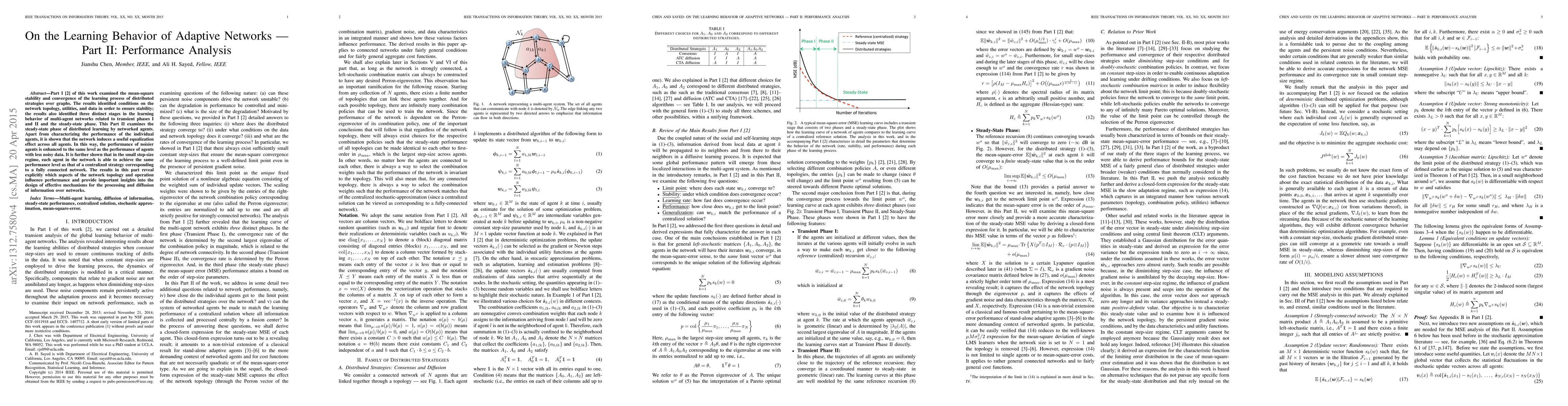 Part I of this work examined the mean-square stability and convergence of the learning process of distributed strategies over graphs. The results identified conditions on the network topology, utilities, and data in order to ensure stability; the results also identified three distinct stages in the learning behavior of multi-agent networks related to transient phases I and II and the steady-state phase. This Part II examines the steady-state phase of distributed learning by networked agents. Apart from characterizing the performance of the individual agents, it is shown that the network induces a useful equalization effect across all agents. In this way, the performance of noisier agents is enhanced to the same level as the performance of agents with less noisy data. It is further shown that in the small step-size regime, each agent in the network is able to achieve the same performance level as that of a centralized strategy corresponding to a fully connected network. The results in this part reveal explicitly which aspects of the network topology and operation influence performance and provide important insights into the design of effective mechanisms for the processing and diffusion of information over networks.