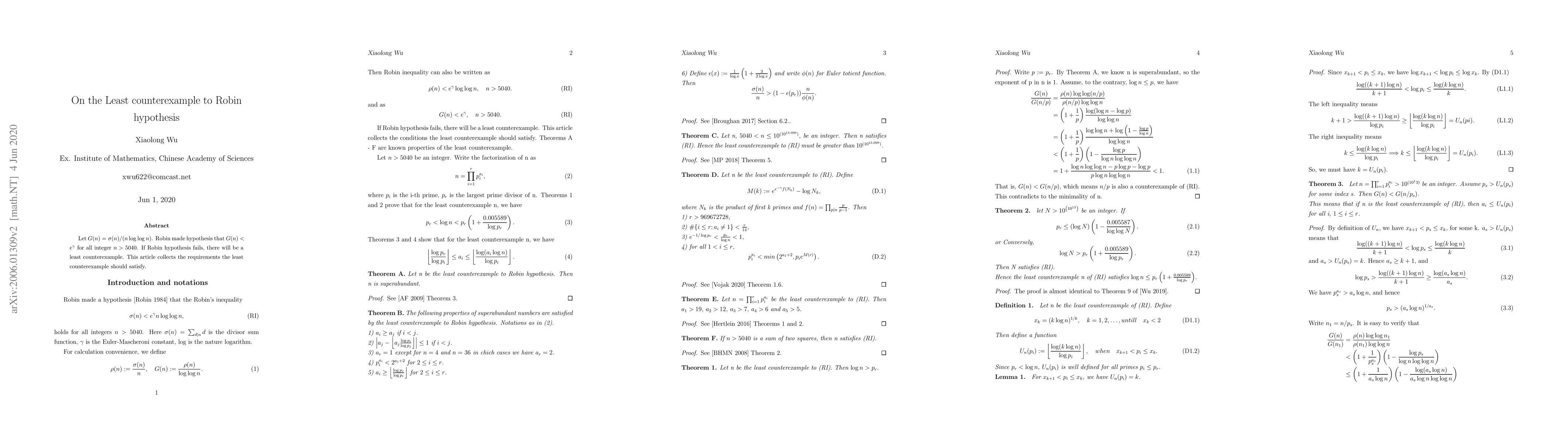 Let $G(n)=\sigma (n)/(n \log \log n )$. Robin made hypothesis that