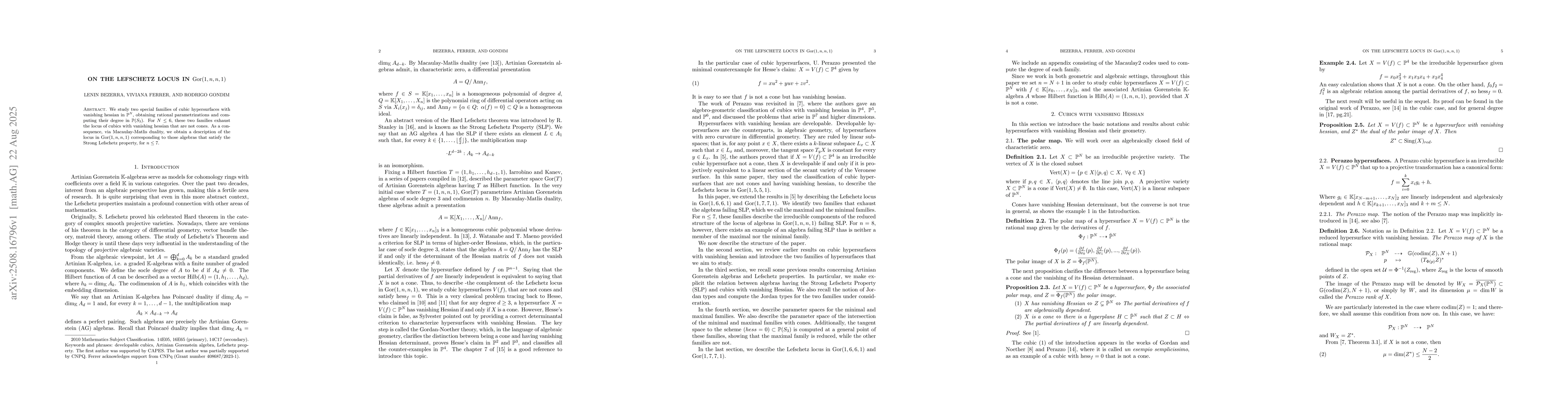 We study two special families of cubic hypersurfaces with vanishing Hessian in $\mathbb{P}^N$, obtaining rational parametrizations and computing their degree in $\mathbb{P}(S_3)$. For $N \leq 6$, these two families exhaust the locus of cubics with vanishing Hessian that are not cones. As a consequence, via Macaulay-Matlis duality, we obtain a description of the locus in $\mathrm{Gor}(1, n, n, 1)$ corresponding to those algebras that satisfy the Strong Lefschetz property, for $n \leq 7$.