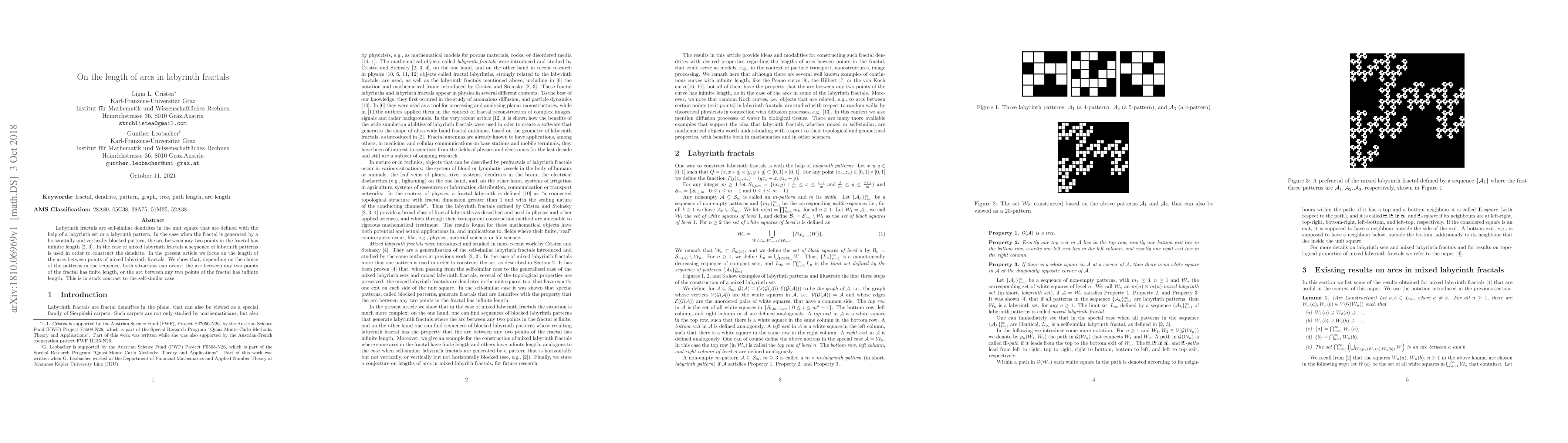 This paper investigates the length of arcs in mixed labyrinth fractals, revealing that the arc length can be either finite or infinite depending on the chosen labyrinth patterns, contrasting with the infinite arc length in self-similar labyrinth fractals.