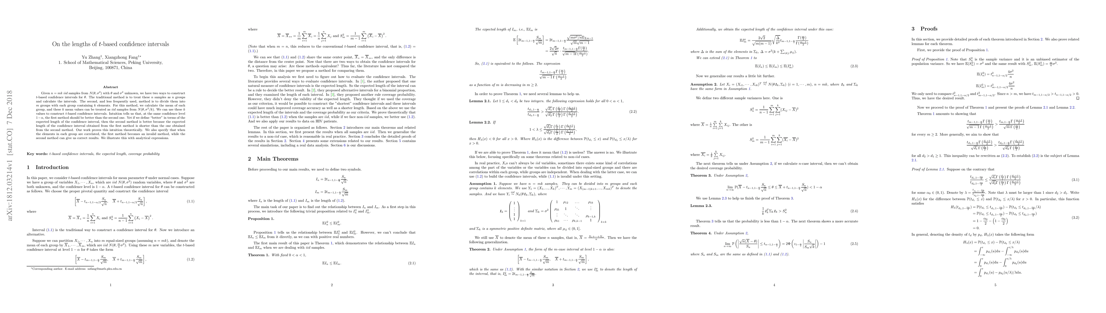 Given $n=mk$ $iid$ samples from $N(\theta,\sigma^2)$ with $\theta$ and $\sigma^2$ unknown, we have two ways to construct $t$-based confidence intervals for $\theta$. The traditional method is to treat these $n$ samples as $n$ groups and calculate the intervals. The second, and less frequently used, method is to divide them into $m$ groups with each group containing $k$ elements. For this method, we calculate the mean of each group, and these $k$ mean values can be treated as $iid$ samples from $N(\theta,\sigma^2/k)$. We can use these $k$ values to construct $t$-based confidence intervals. Intuition tells us that, at the same confidence level $1-\alpha$, the first method should be better than the second one. Yet if we define "better" in terms of the expected length of the confidence interval, then the second method is better because the expected length of the confidence interval obtained from the first method is shorter than the one obtained from the second method. Our work proves this intuition theoretically. We also specify that when the elements in each group are correlated, the first method becomes an invalid method, while the second method can give us correct results. We illustrate this with analytical expressions.