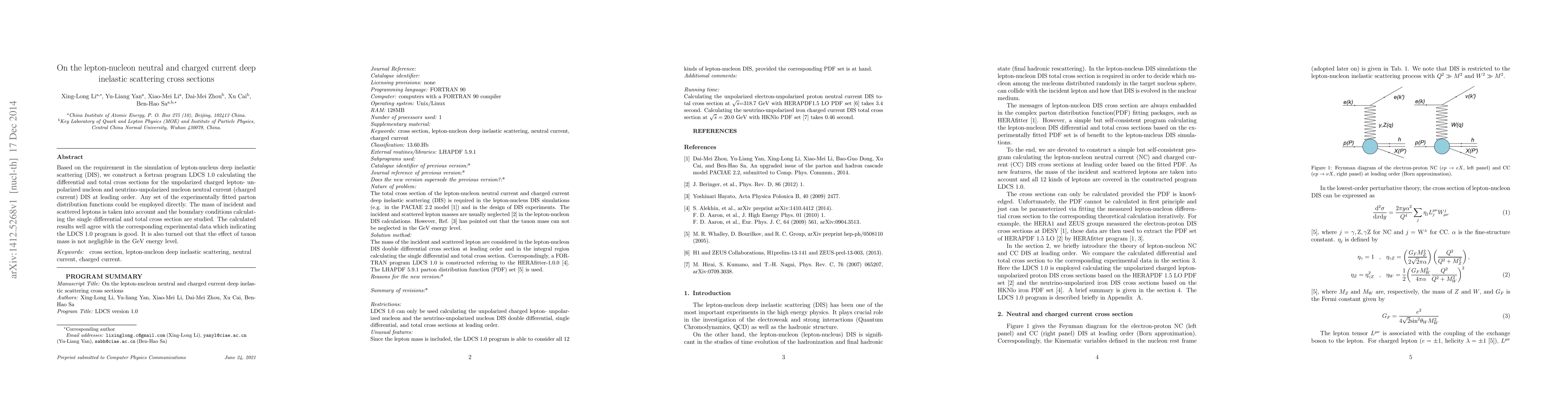 This paper presents LDCS 1.0, a Fortran program for calculating differential and total cross sections for lepton-nucleon and neutrino-nucleon deep inelastic scattering at leading order, showing good agreement with experimental data and highlighting the non-negligible effect of tauon mass in GeV energy levels.