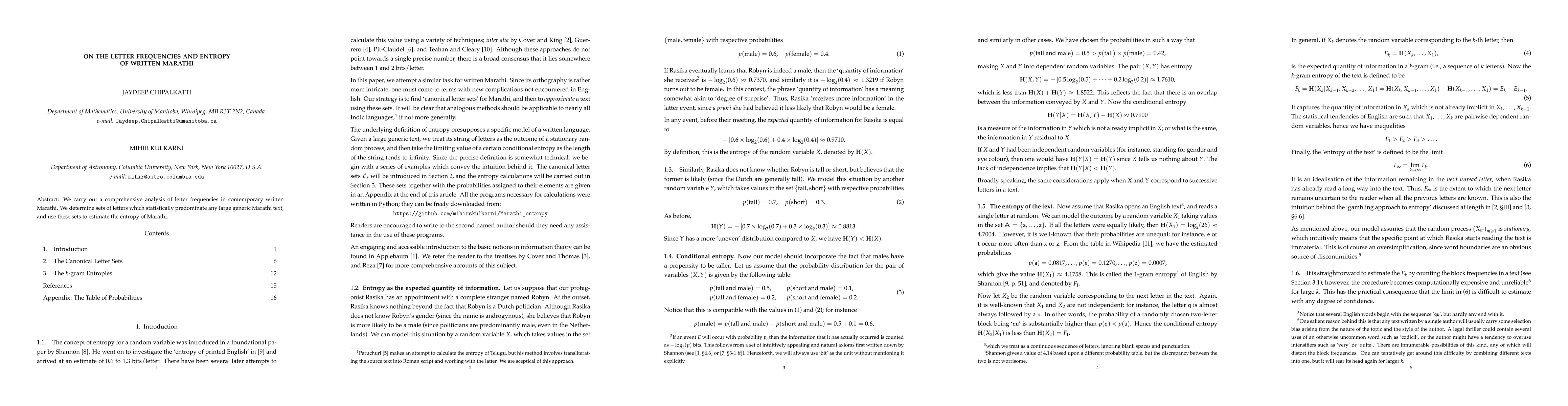 We carry out a comprehensive analysis of letter frequencies in contemporary written Marathi. We determine sets of letters which statistically predominate any large generic Marathi text, and use these sets to estimate the entropy of Marathi.