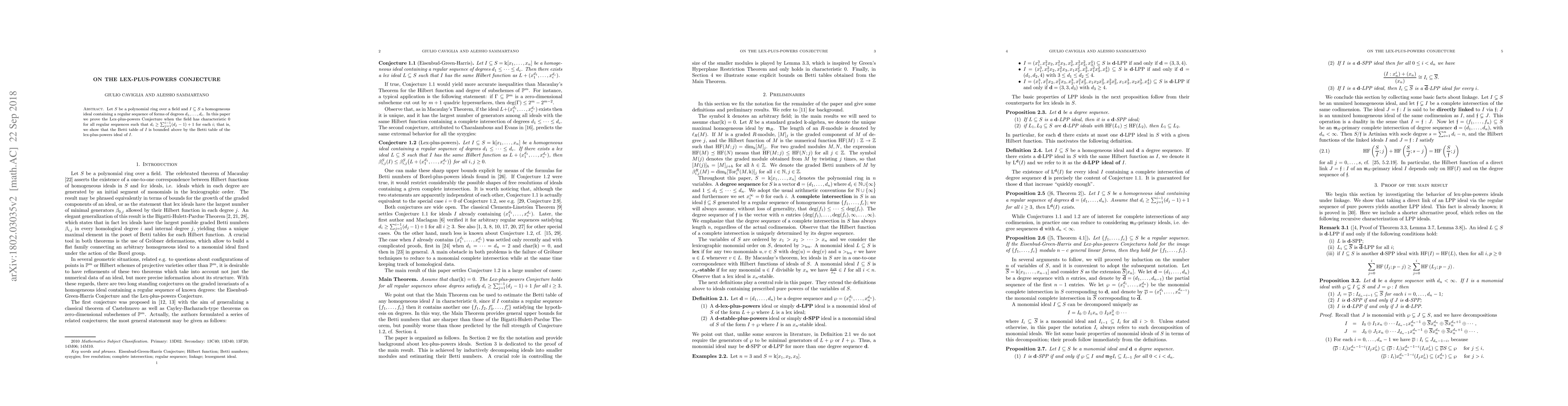 A combination of algebraic geometry, commutative algebra, and computational methods were used to study the Lex-plus-Powers Conjecture.