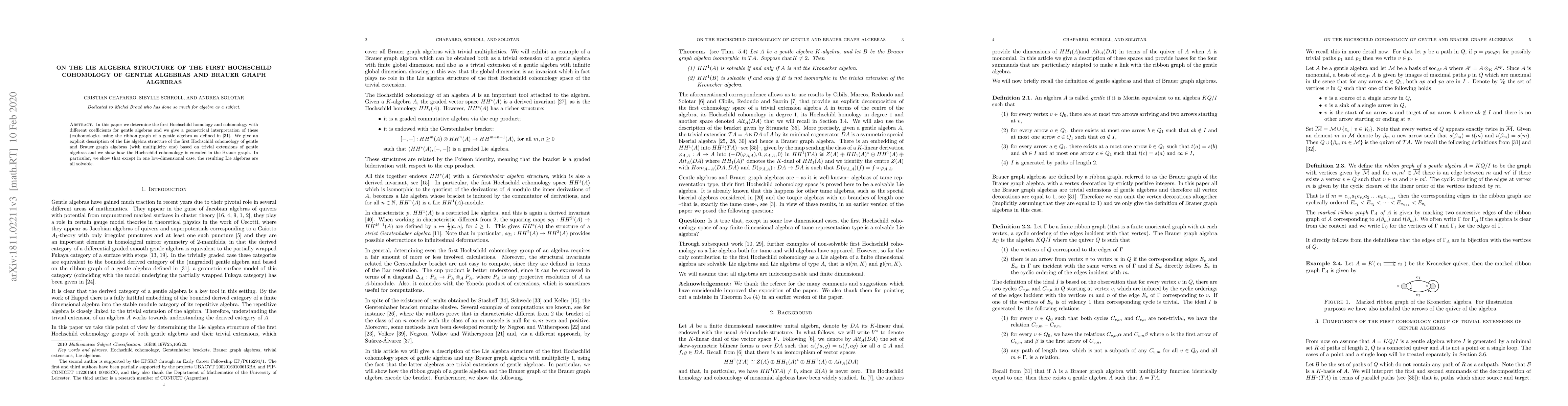 This paper examines the Lie algebra structure of the first Hochschild cohomology for gentle algebras and Brauer graph algebras, providing a geometrical interpretation via ribbon graphs. It reveals that the resulting Lie algebras are typically solvable, except for one low-dimensional exception.