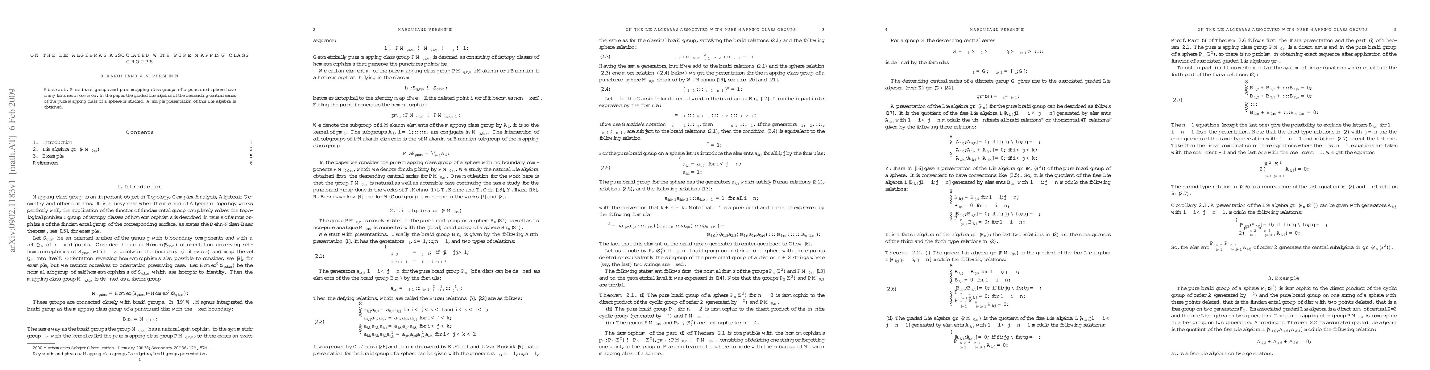 Pure braid groups and pure mapping class groups of a punctured sphere have many features in common. In the paper the graded Lie algebra of the descending central series of the pure mapping class of a sphere is studied. A simple presentation of this Lie algebra is obtained.