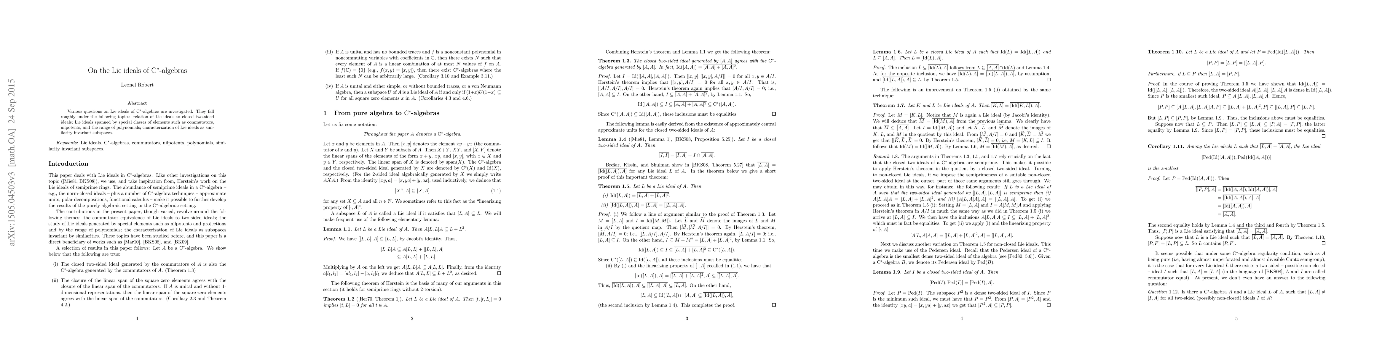 This paper explores the relationship between Lie ideals and closed two-sided ideals in C*-algebras, investigates Lie ideals generated by commutators, nilpotents, and polynomial ranges, and characterizes Lie ideals as similarity invariant subspaces.