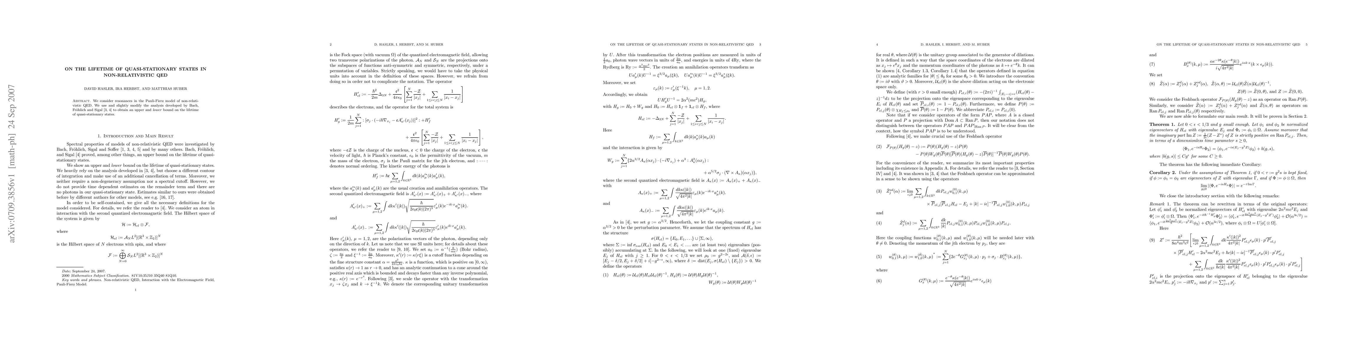 We consider resonances in the Pauli-Fierz model of non-relativistic QED. We use and slightly modify the analysis developed by Bach, Froehlich, and Sigal to obtain an upper and lower bound on the lifetime of quasi-stationary states.