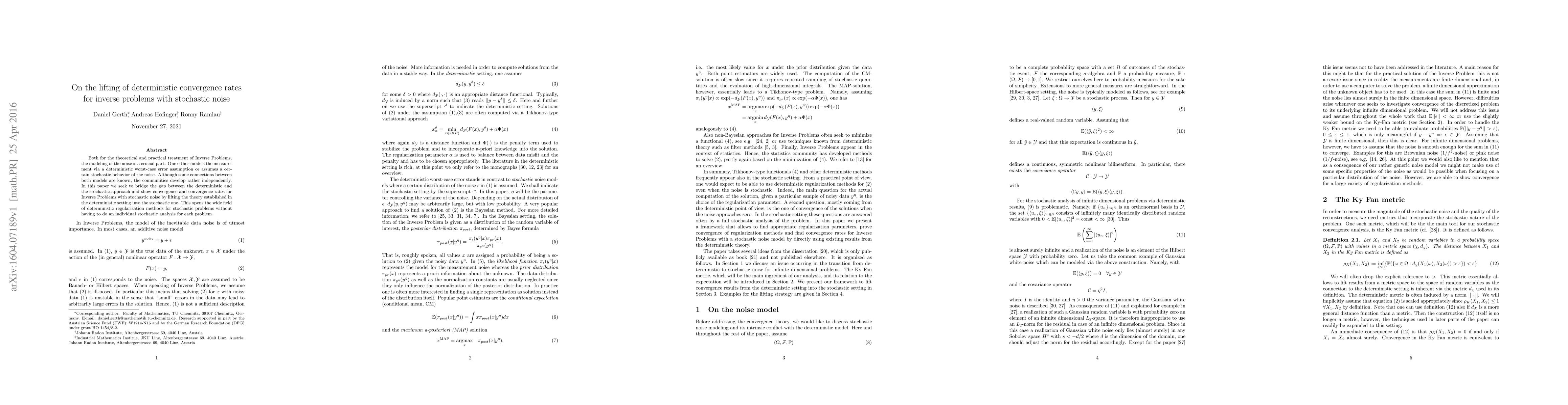 Both for the theoretical and practical treatment of Inverse Problems, the modeling of the noise is a crucial part. One either models the measurement via a deterministic worst-case error assumption or assumes a certain stochastic behavior of the noise. Although some connections between both models are known, the communities develop rather independently. In this paper we seek to bridge the gap between the deterministic and the stochastic approach and show convergence and convergence rates for Inverse Problems with stochastic noise by lifting the theory established in the deterministic setting into the stochastic one. This opens the wide field of deterministic regularization methods for stochastic problems without having to do an individual stochastic analysis for each problem.