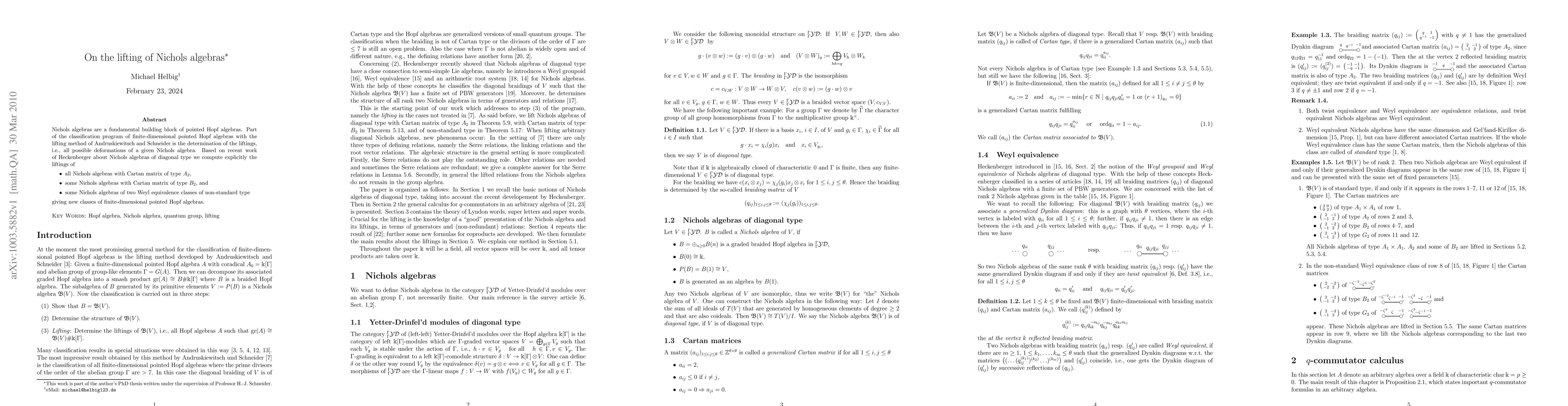 This paper classifies liftings of Nichols algebras, which are essential components of pointed Hopf algebras, using the lifting method of Andruskiewitsch and Schneider. It explicitly determines the liftings for Nichols algebras of type A_2 and some of type B_2, introducing new classes of finite-dimensional pointed Hopf algebras.