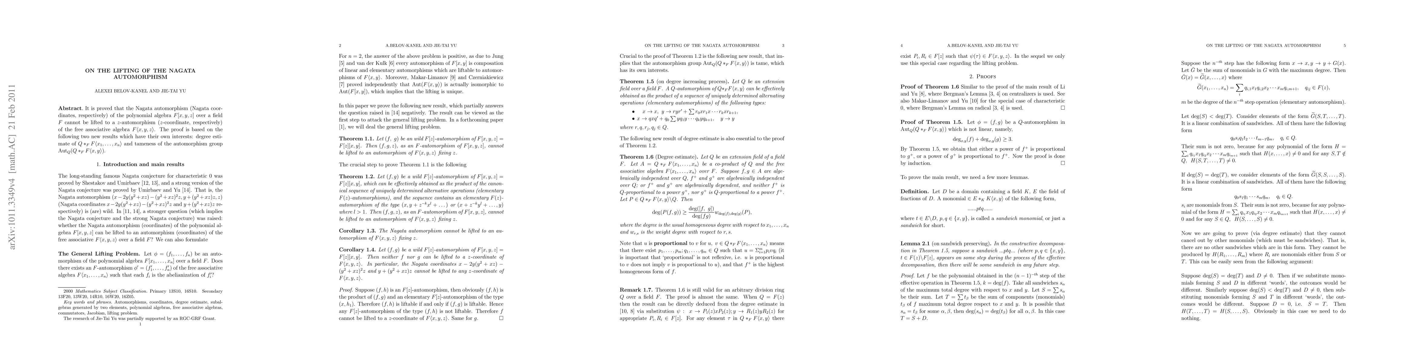 The paper proves that the Nagata automorphism of $F[x,y,z]$ cannot be lifted to a $z$-automorphism of $K<x,y,z>$. The proof relies on new results regarding the degree estimate of $Q*_FF<x_1,...,x_n>$ and the tameness of ${\text{Aut}_Q(Q*_FF<x,y>)}$.