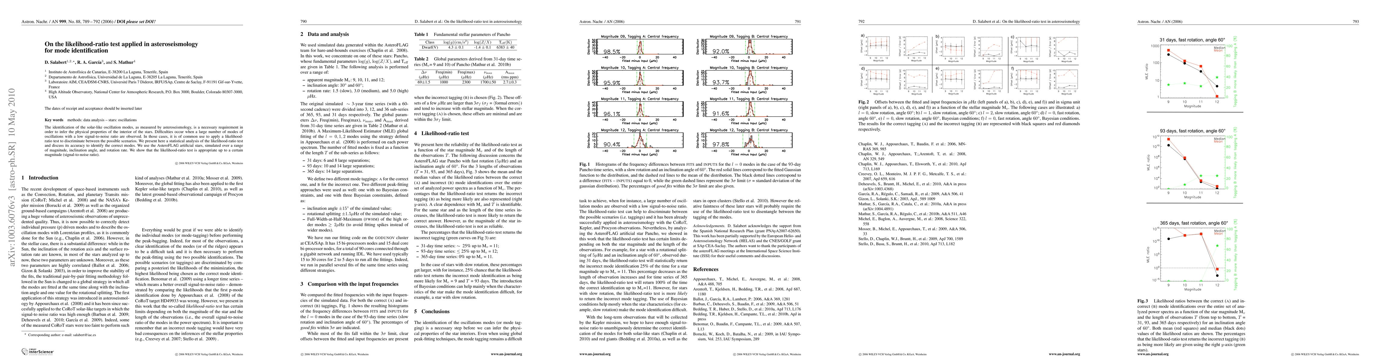 The identification of the solar-like oscillation modes, as measured by asteroseismology, is a necessary requirement in order to infer the physical properties of the interior of the stars. Difficulties occur when a large number of modes of oscillations with a low signal-to-noise ratio are observed. In those cases, it is of common use to apply a likelihood-ratio test to discriminate between the possible scenarios. We present here a statistical analysis of the likelihood-ratio test and discuss its accuracy to identify the correct modes. We use the AsteroFLAG artificial stars, simulated over a range of magnitude, inclination angle, and rotation rate. We show that the likelihood-ratio test is appropriate up to a certain magnitude (signal-to-noise ratio).