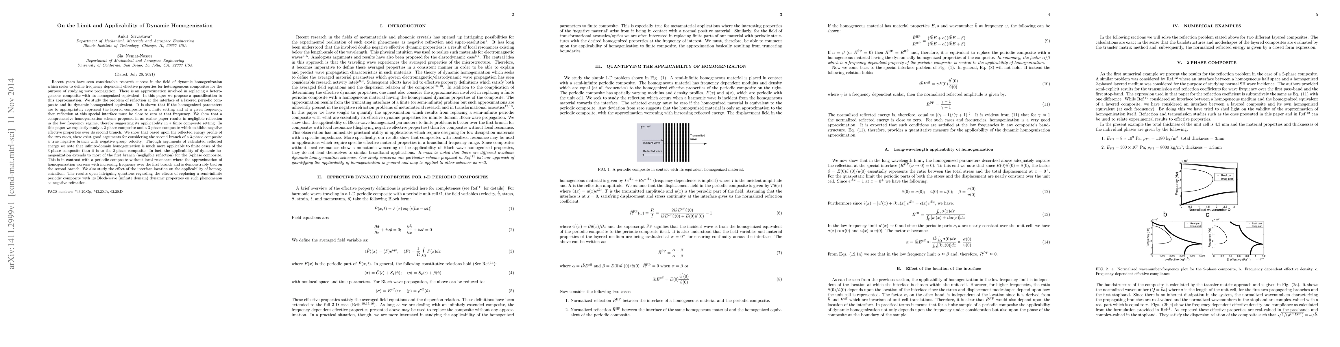 Recent years have seen considerable research success in the field of dynamic homogenization which seeks to define frequency dependent effective properties for heterogeneous composites for the purpose of studying wave propagation. There is an approximation involved in replacing a heterogeneous composite with its homogenized equivalent. In this paper we propose a quantification to this approximation. We study the problem of reflection at the interface of a layered periodic composite and its dynamic homogenized equivalent. It is shown that if the homogenized parameters are to appropriately represent the layered composite in a finite setting and at a given frequency, then reflection at this special interface must be close to zero at that frequency. We show that a comprehensive homogenization scheme proposed in an earlier paper results in negligible reflection in the low frequency regime, thereby suggesting its applicability in a finite composite setting. In this paper we explicitly study a 2-phase composite and a 3-phase composite which exhibits negative effective properties over its second branch. We show that based upon the reflected energy profile of the two cases, there exist good arguments for considering the second branch of a 3-phase composite a true negative branch with negative group velocity. The results open intriguing questions regarding the effects of replacing a semi-infinite periodic composite with its Bloch-wave (infinite domain) dynamic properties on such phenomenon as negative refraction.