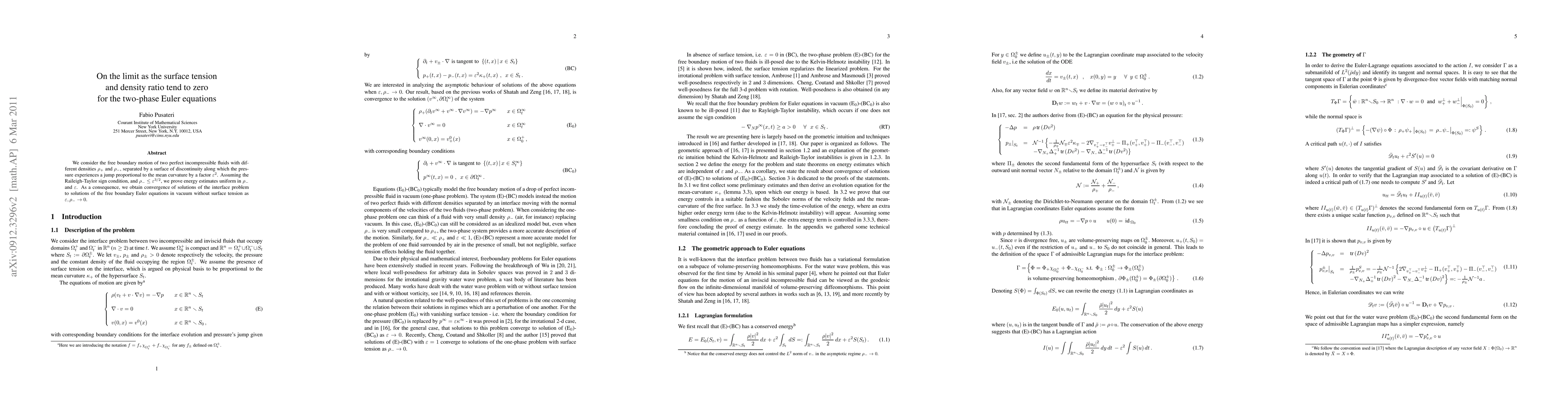 We consider the free-boundary motion of two perfect incompressible fluids with different densities $\rho_+$ and $\rho_-$, separated by a surface of discontinuity along which the pressure experiences a jump proportional to the mean curvature by a factor $\epsilon^2$. Assuming the Raileigh-Taylor sign condition and $\rho_- \leq \epsilon^{3/2}$ we prove energy estimates uniform in $\rho_-$ and $\epsilon$. As a consequence we obtain convergence of solutions of the interface problem to solutions of the free-boundary Euler equations in vacuum without surface tension as $\epsilon$ and $\rho_-$ tend to zero.