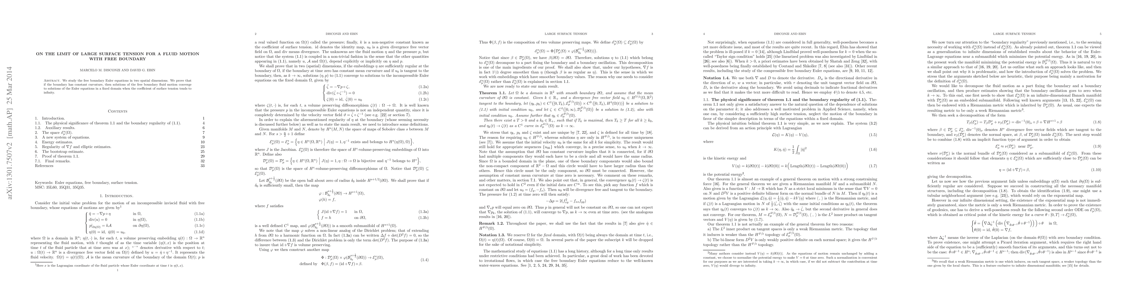 Summary: This paper investigates the free boundary Euler equations in two dimensions, proving that under regular boundary conditions, fluid motion solutions converge to fixed domain Euler solutions as surface tension approaches infinity.