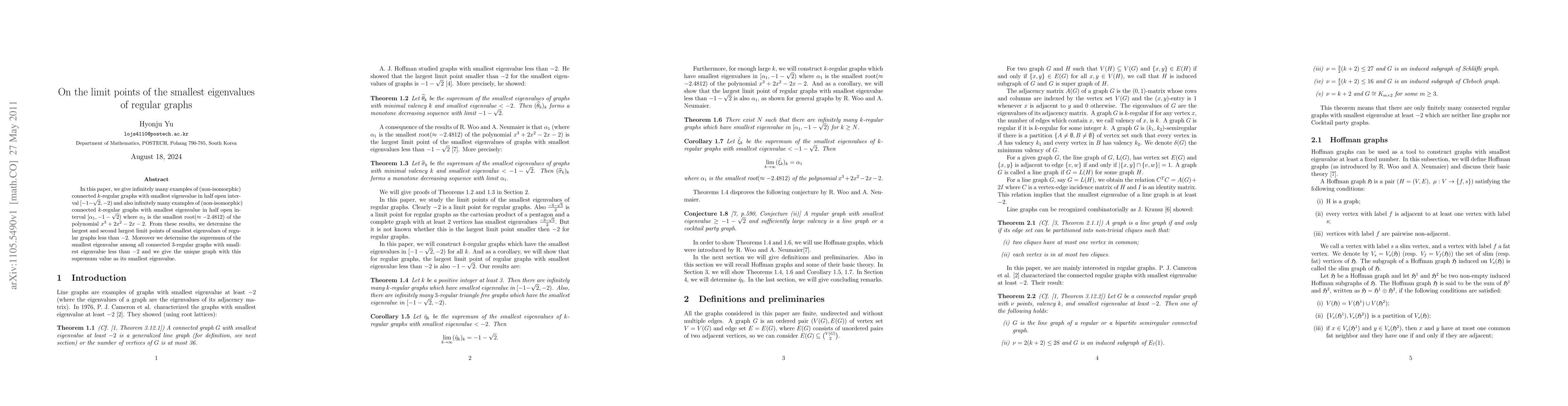 This paper finds infinitely many regular graphs with smallest eigenvalues in specific intervals and determines limit points of these values, shedding light on the behavior of eigenvalues in regular graphs.