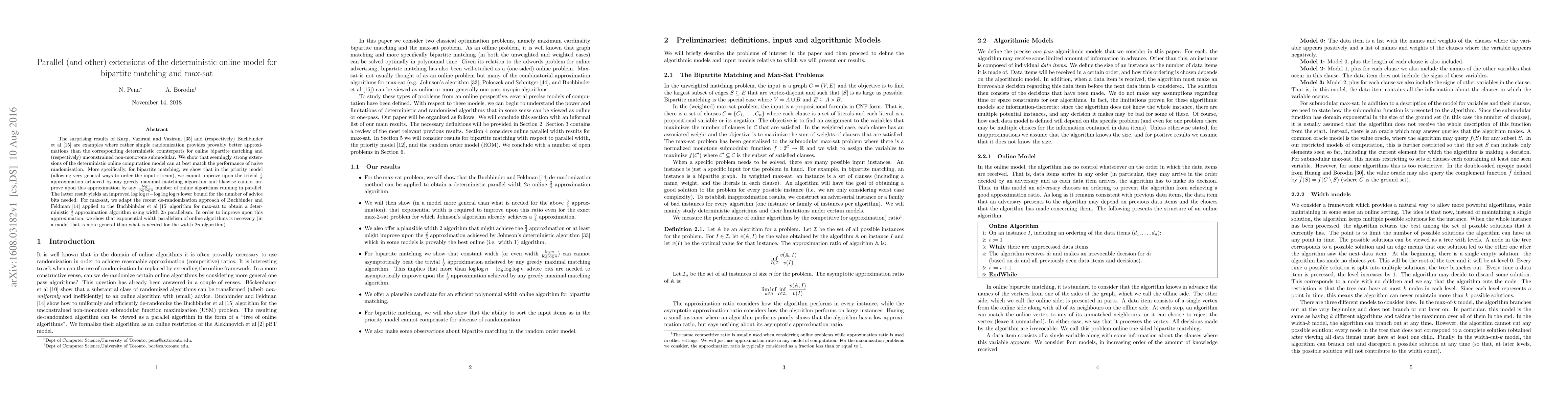 The surprising results of Karp, Vazirani and Vazirani and (respectively) Buchbinder et al are examples where rather simple randomizations provide provably better approximations than the corresponding deterministic counterparts for online bipartite matching and (respectively) unconstrained non-monotone submodular maximization. We show that seemingly strong extensions of the deterministic online computation model can at best match the performance of naive randomization. More specifically, for bipartite matching, we show that in the priority model (allowing very general ways to order the input stream), we cannot improve upon the trivial 1/2-approximation achieved by any greedy maximal matching algorithm and likewise cannot improve upon this approximation by any log n/log log n number of online algorithms running in parallel. The latter result yields an improved log log n - log log log n lower bound for the number of advice bits needed. For max-sat, we adapt the recent de-randomization approach of Buchbinder and Feldman applied to the Buchbinbder et al algorithm for max-sat to obtain a deterministic 3/4-approximation algorithm using width 2n parallelism. In order to improve upon this approximation, we show that exponential width parallelism of online algorithms is necessary (in a model that is more general than what is needed for the width 2n algorithm).