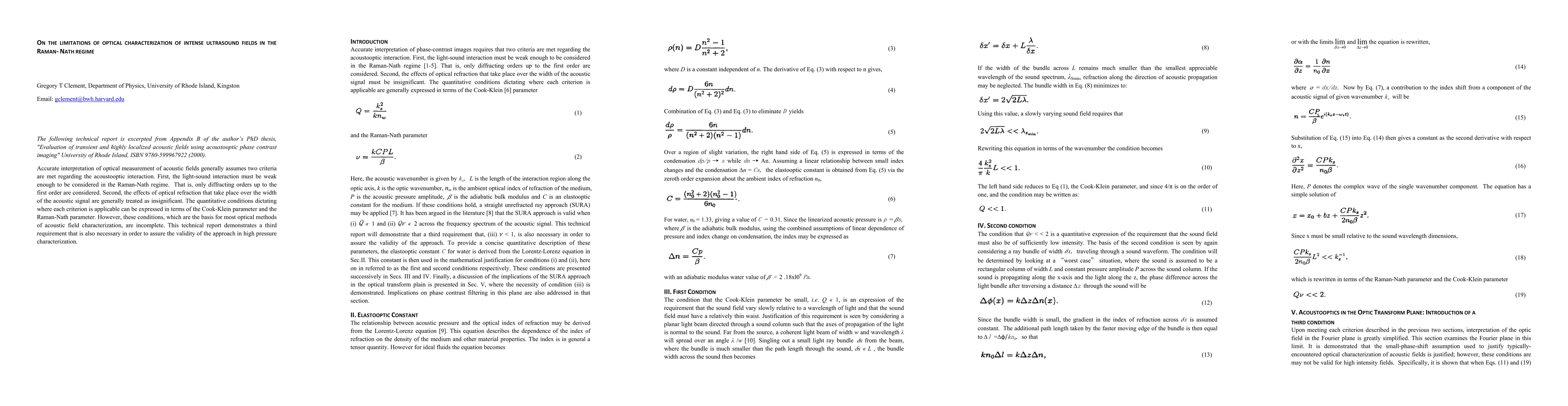 Accurate interpretation of optical measurement of acoustic fields generally assumes two criteria are met regarding the acoustooptic interaction. First, the light-sound interaction must be weak enough to be considered in the Raman-Nath regime. That is, only diffracting orders up to the first order are considered. Second, the effects of optical refraction that take place over the width of the acoustic signal are generally treated as insignificant. The quantitative conditions dictating where each criterion is applicable can be expressed in terms of the Cook-Klein parameter and the Raman-Nath parameter. However, these conditions, which are the basis for most optical methods of acoustic field characterization, are incomplete. This technical report demonstrates a third requirement that is also necessary in order to assure the validity of the approach in high pressure characterization.