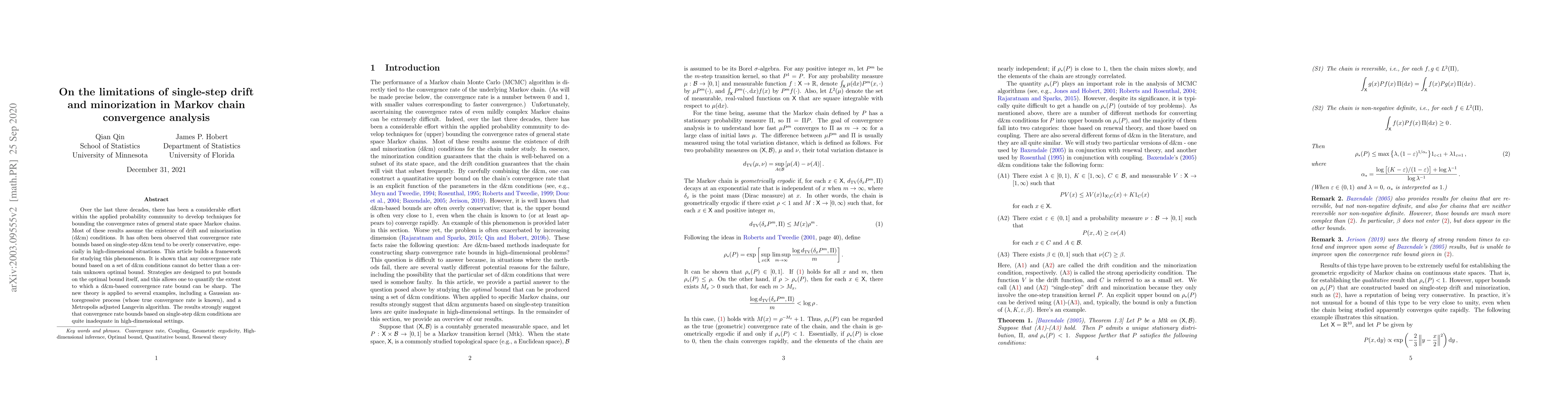 A new framework shows that single-step drift and minorization convergence rate bounds can be overly conservative in high-dimensional settings, leading to inadequate bounds for certain Markov chains.