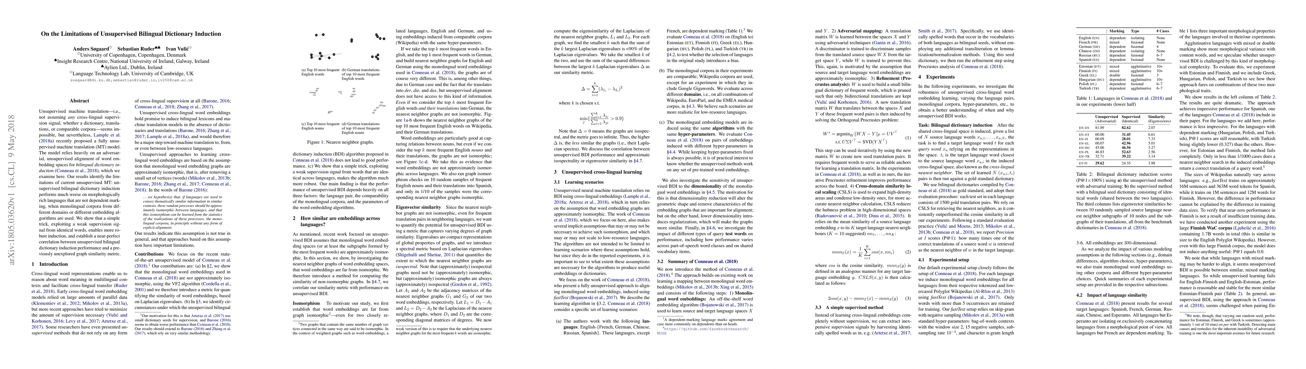 This paper examines the limitations of unsupervised bilingual dictionary induction in machine translation, finding that it performs poorly for morphologically rich languages. A simple trick leveraging identical words from monolingual corpora improves robustness, correlating closely with a new graph similarity metric.