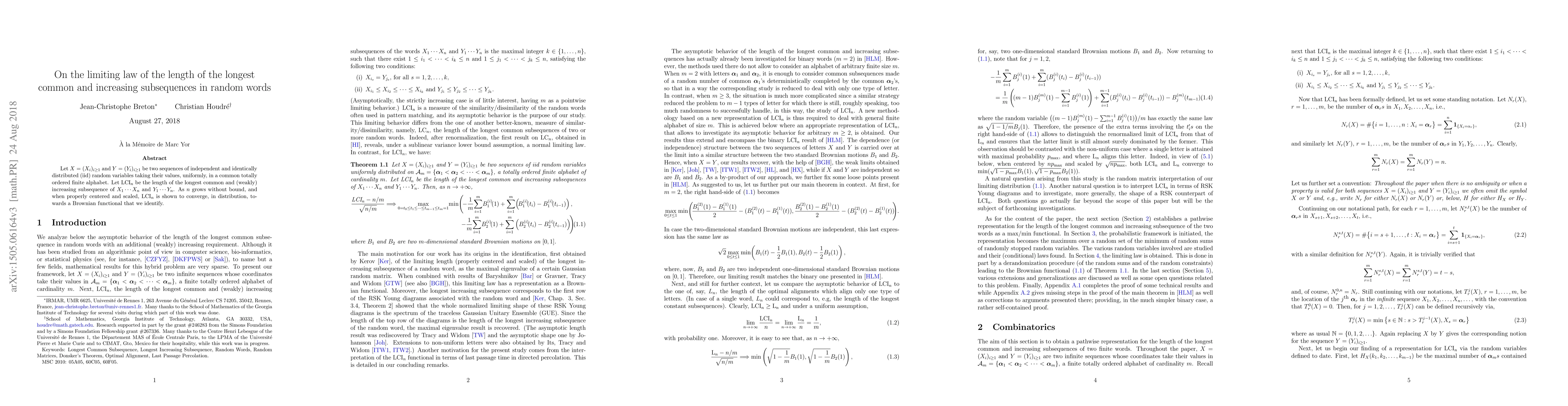 This paper investigates the limiting behavior of the longest common and increasing subsequence (LCI$_n$) in two sequences of random variables drawn from a finite alphabet. It demonstrates that, as the sequence length $n$ increases, LCI$_n$ converges in distribution to a specific Brownian functional.