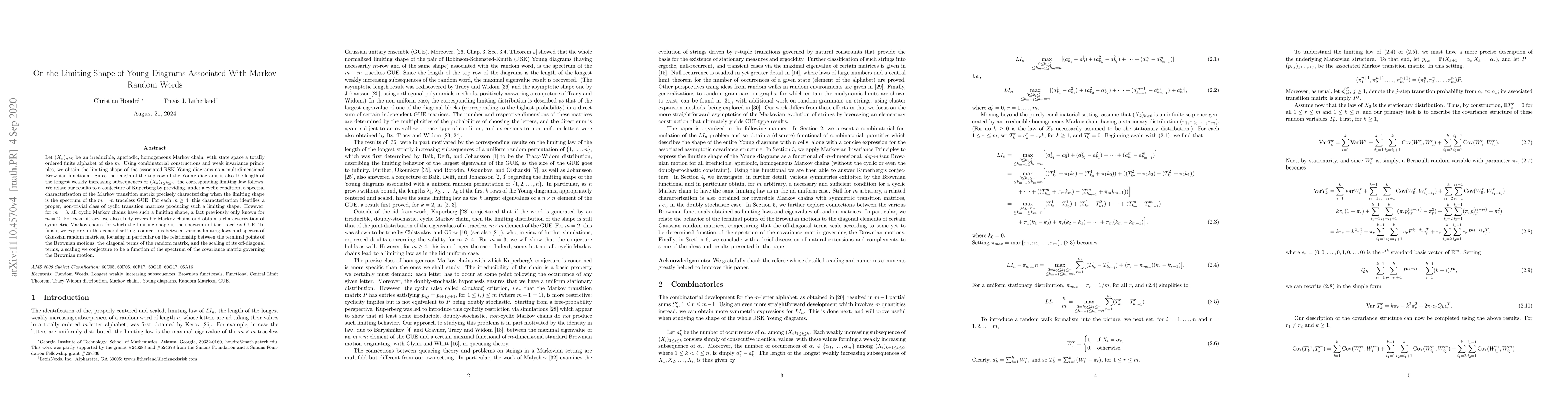 This paper studies the limiting shape of Young diagrams derived from irreducible Markov chains, proving that these shapes converge to a multidimensional Brownian functional. It identifies conditions under which these shapes correspond to the spectrum of the traceless GUE, with specific focus on cyclic and reversible Markov chains, and proposes a conjecture linking Gaussian random matrix spectra to the scaling of Brownian motion covariance matrices.