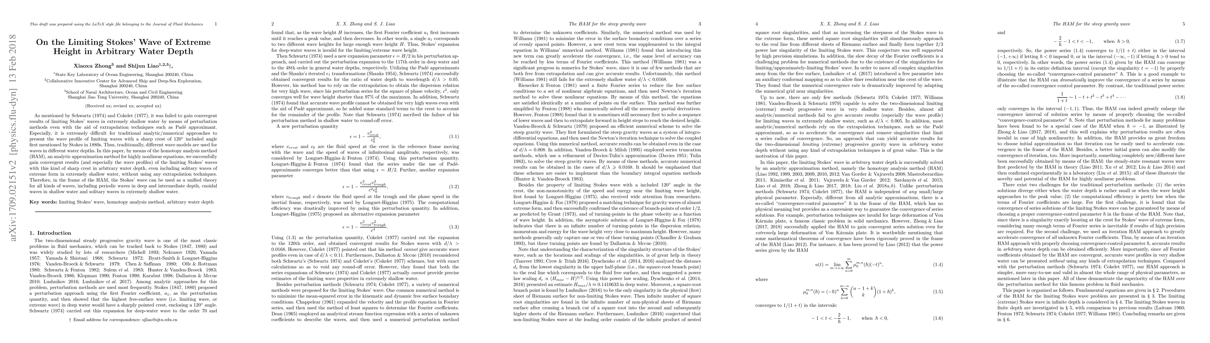 This paper utilizes the homotopy analysis method (HAM) to achieve convergent results for the limiting Stokes' waves, providing wave profiles with sharp crests in arbitrary water depths, including extreme solitary waves. This approach unifies wave theory across different water depths without requiring extrapolation techniques.