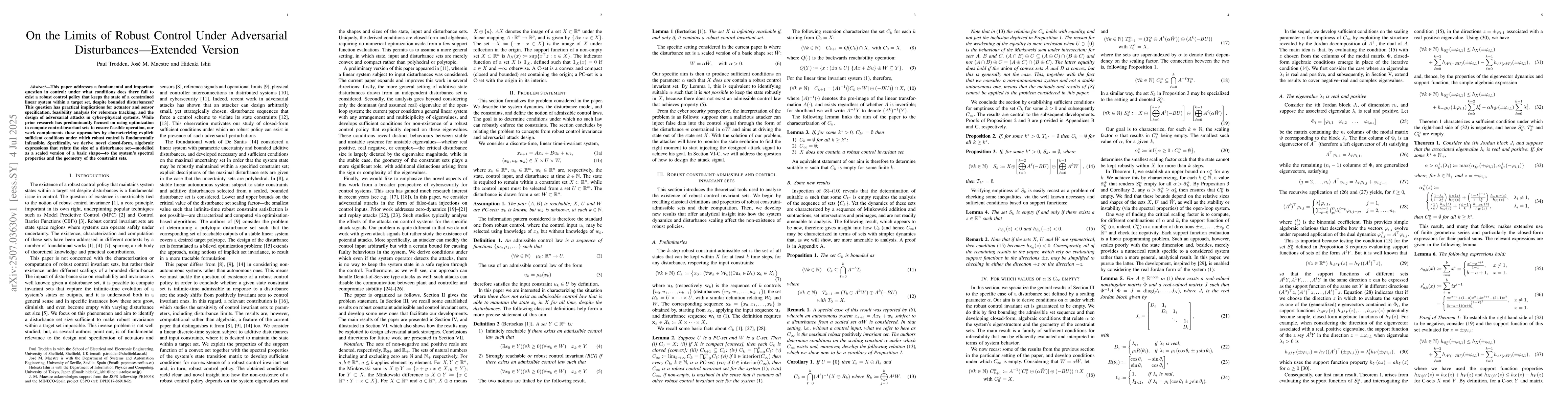 This paper addresses a fundamental and important question in control: under what conditions does there fail to exist a robust control policy that keeps the state of a constrained linear system within a target set, despite bounded disturbances? This question has practical implications for actuator and sensor specification, feasibility analysis for reference tracking, and the design of adversarial attacks in cyber-physical systems. While prior research has predominantly focused on using optimization to compute control-invariant sets to ensure feasible operation, our work complements these approaches by characterizing explicit sufficient conditions under which robust control is fundamentally infeasible. Specifically, we derive novel closed-form, algebraic expressions that relate the size of a disturbance set -- modelled as a scaled version of a basic shape -- to the system's spectral properties and the geometry of the constraint sets.