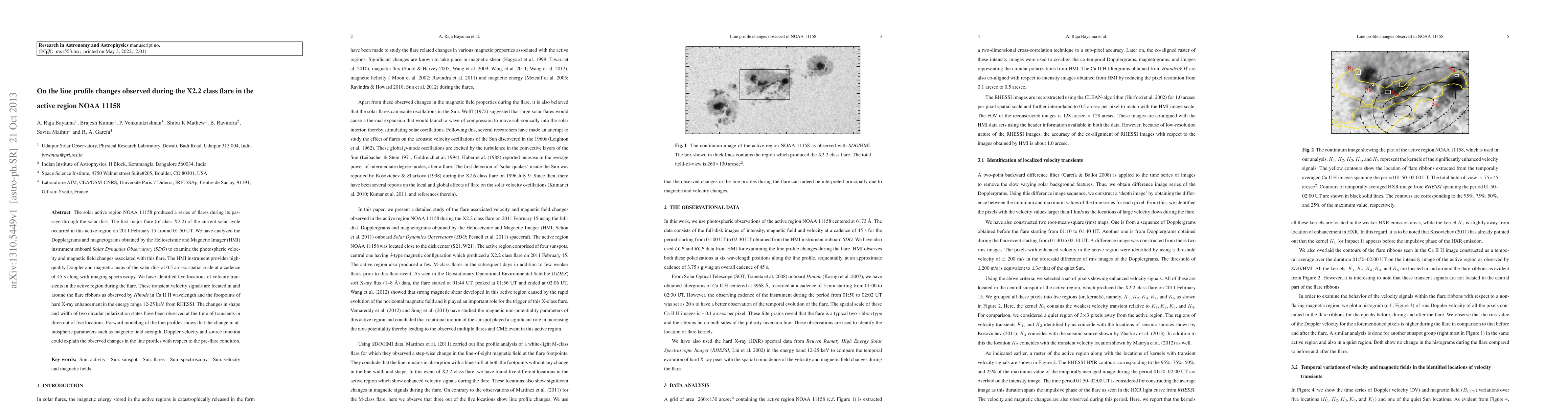 This study analyzes the X2.2 class flare in solar active region NOAA 11158 using data from the SDO/HMI instrument, identifying five transient velocity locations during the flare. Changes in line profile shapes and widths were observed in three locations, which forward modeling attributes to variations in magnetic field strength, Doppler velocity, and source function.