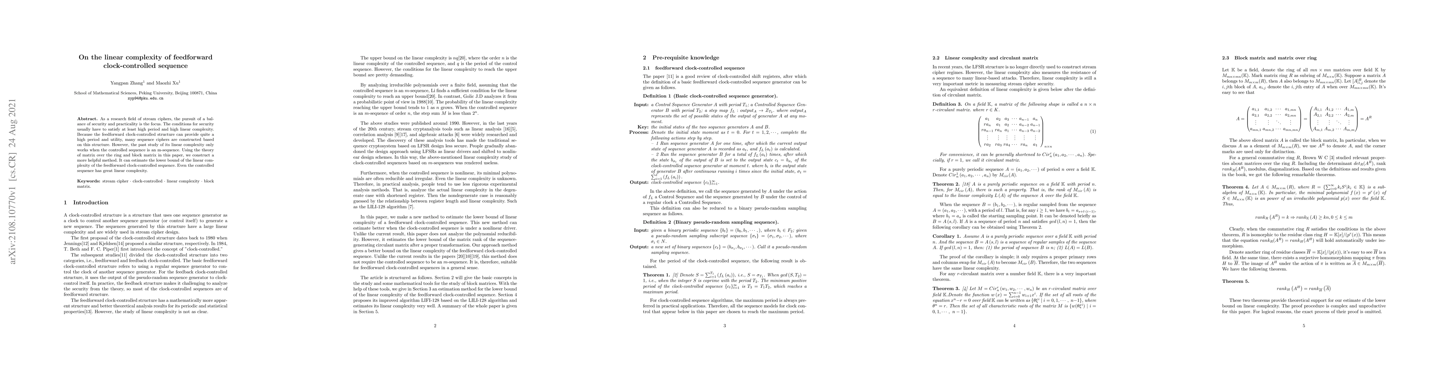 Researchers developed a method to estimate the lower bound of linear complexity for feedforward clock-controlled sequences, providing insight into their security and practicality balance.