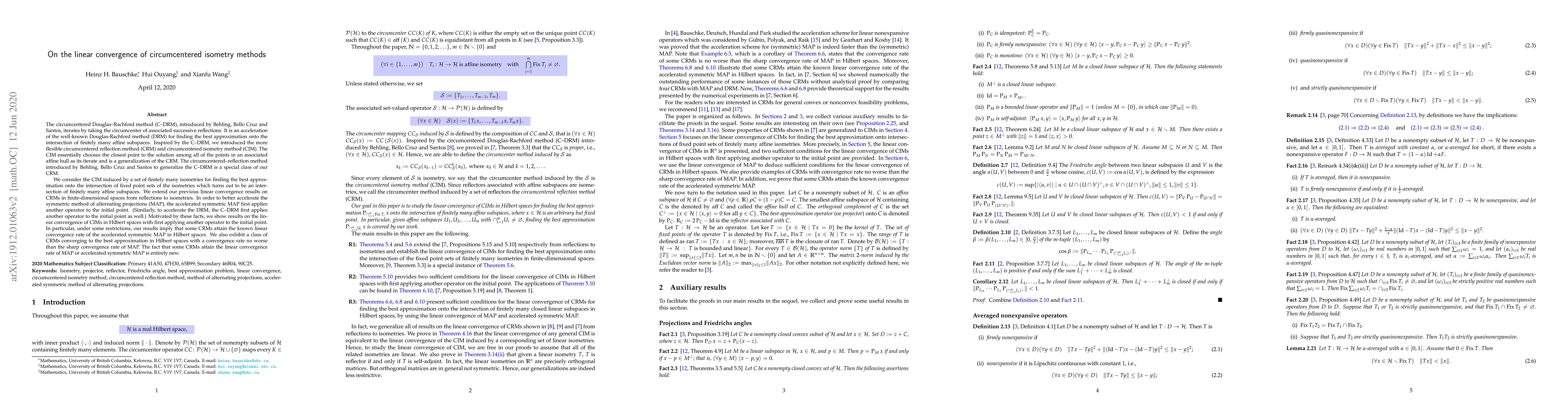 The circumcentered Douglas--Rachford method (C--DRM), introduced by Behling, Bello Cruz and Santos, is an acceleration of the well-known Douglas-Rachford method (DRM) for finding the best approximation onto the intersection of finitely many affine subspaces. Inspired by the C--DRM, we introduced the more flexible circumcentered reflection method (CRM) and circumcentered isometry method (CIM). The CIM essentially chooses the closest point to the solution among all of the points in an associated affine hull as its iterate and is a generalization of the CRM. The circumcentered--reflection method introduced by Behling et al. to generalize the C--DRM is a special class of our CRM. We consider the CIM induced by a set of finitely many isometries for finding the best approximation onto the intersection of fixed point sets of the isometries which turns out to be an intersection of finitely many affine subspaces. We extend our previous linear convergence results on CRMs in finite-dimensional spaces from reflections to isometries. In order to better accelerate the symmetric method of alternating projections (MAP), the accelerated symmetric MAP first applies another operator to the initial point. (Similarly, to accelerate the DRM, the C--DRM first applies another operator to the initial point as well.) Motivated by these facts, we show results on the linear convergence of CIMs in Hilbert spaces with first applying another operator to the initial point. In particular, under some restrictions, our results imply that some CRMs attain the known linear convergence rate of the accelerated symmetric MAP in Hilbert spaces. We also exhibit a class of CRMs converging to the best approximation in Hilbert spaces with a convergence rate no worse than the sharp convergence rate of MAP. The fact that some CRMs attain the linear convergence rate of MAP or accelerated symmetric MAP is entirely new.