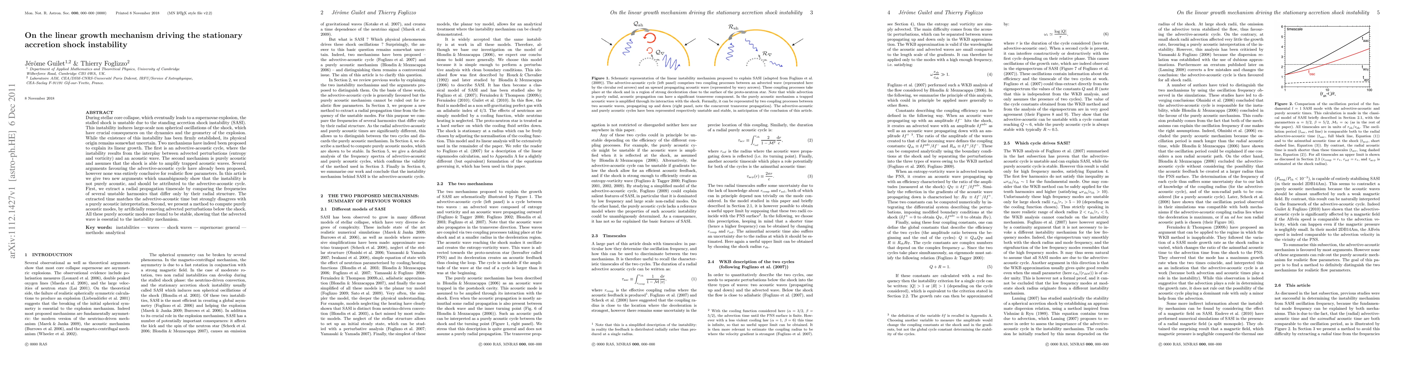 This paper investigates the linear growth mechanism behind the standing accretion shock instability (SASI) during stellar core collapse, concluding that it is driven by an advective-acoustic cycle rather than purely acoustic waves. The authors provide two key arguments: the radial propagation timescale matches the advective-acoustic time, and purely acoustic modes, when advected perturbations are removed, are found to be stable.