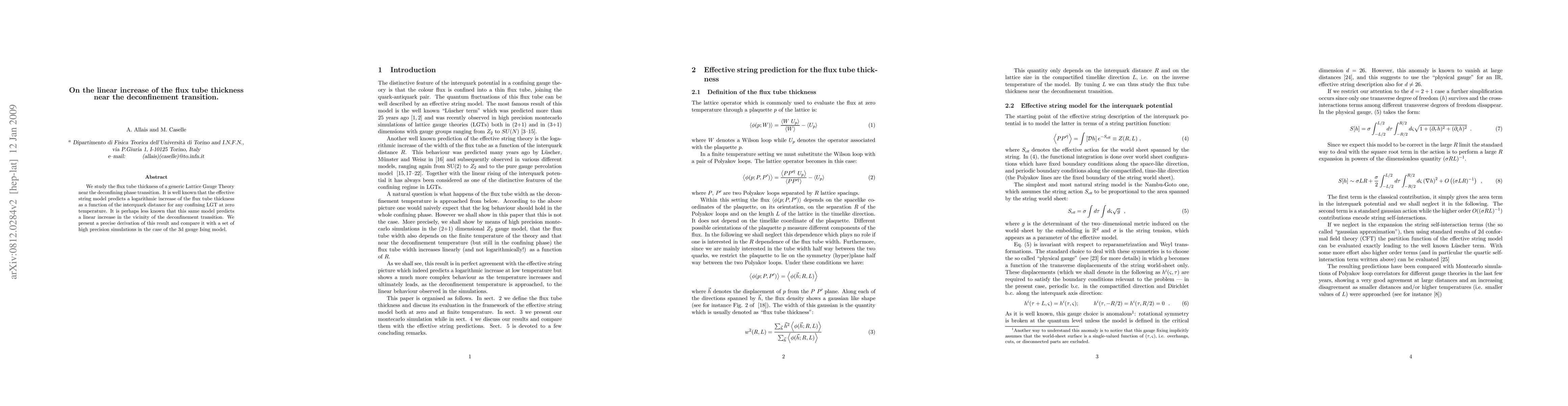 A study reveals a linear increase in flux tube thickness near the deconfinement transition in lattice gauge theory, contradicting the expected logarithmic growth at high temperatures.