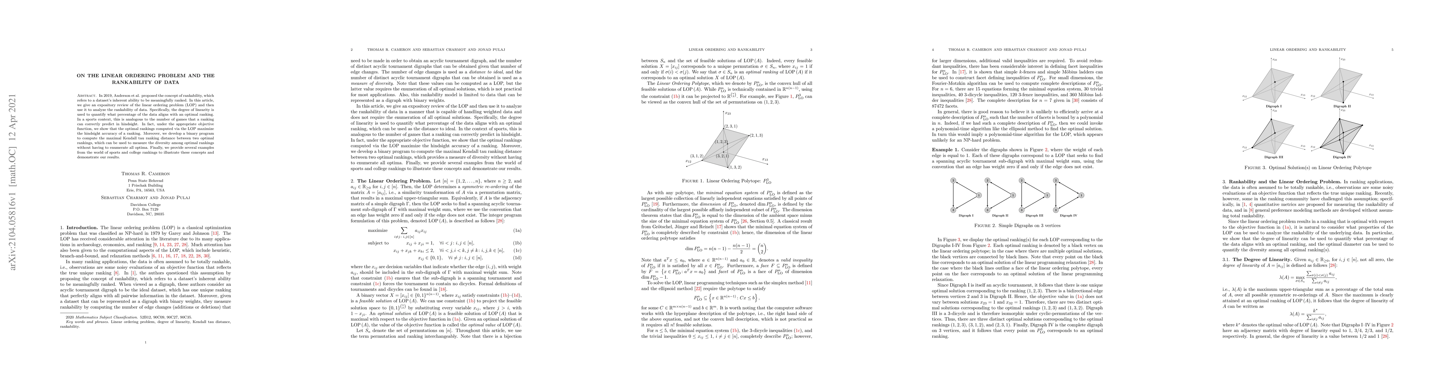In 2019, Anderson et al. proposed the concept of rankability, which refers to a dataset's inherent ability to be meaningfully ranked. In this article, we give an expository review of the linear ordering problem (LOP) and then use it to analyze the rankability of data. Specifically, the degree of linearity is used to quantify what percentage of the data aligns with an optimal ranking. In a sports context, this is analogous to the number of games that a ranking can correctly predict in hindsight. In fact, under the appropriate objective function, we show that the optimal rankings computed via the LOP maximize the hindsight accuracy of a ranking. Moreover, we develop a binary program to compute the maximal Kendall tau ranking distance between two optimal rankings, which can be used to measure the diversity among optimal rankings without having to enumerate all optima. Finally, we provide several examples from the world of sports and college rankings to illustrate these concepts and demonstrate our results.