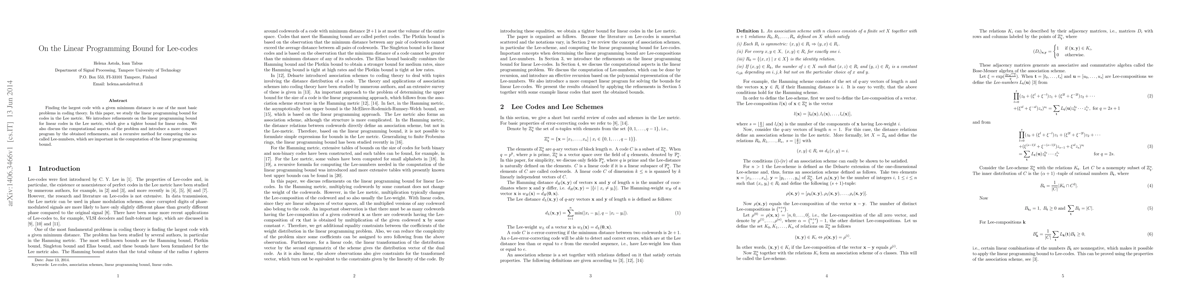 This paper refines the linear programming bound for Lee-codes, a fundamental problem in coding theory, providing a tighter bound for linear codes and introducing a recursive method to compute Lee-numbers.