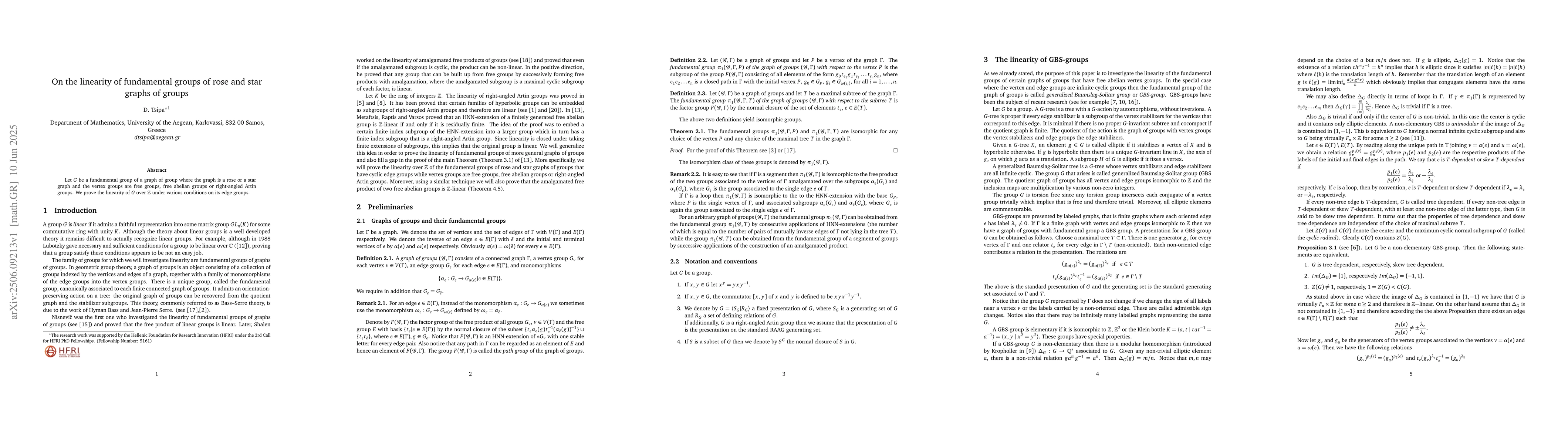 Let $G$ be a fundamental group of a graph of group where the graph is a rose or a star graph and the vertex groups are free groups, free abelian groups or right-angled Artin groups. We prove the linearity of $G$ over $\mathbb{Z}$ under various conditions on its edge groups.
