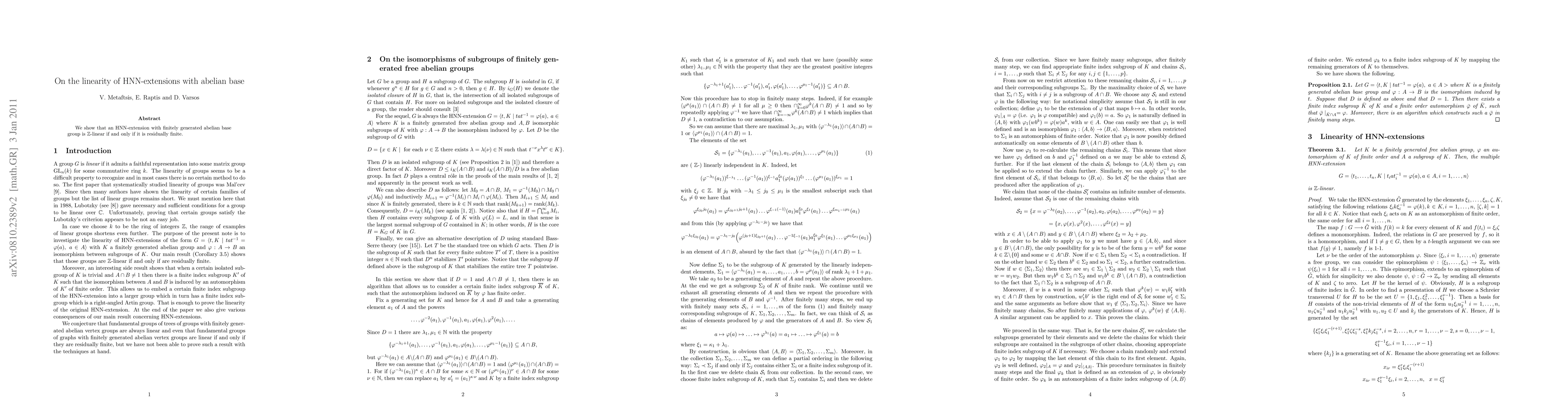 We show that an HNN-extension with finitely generated abelian base group is Z-linear if and only if it is residually finite.