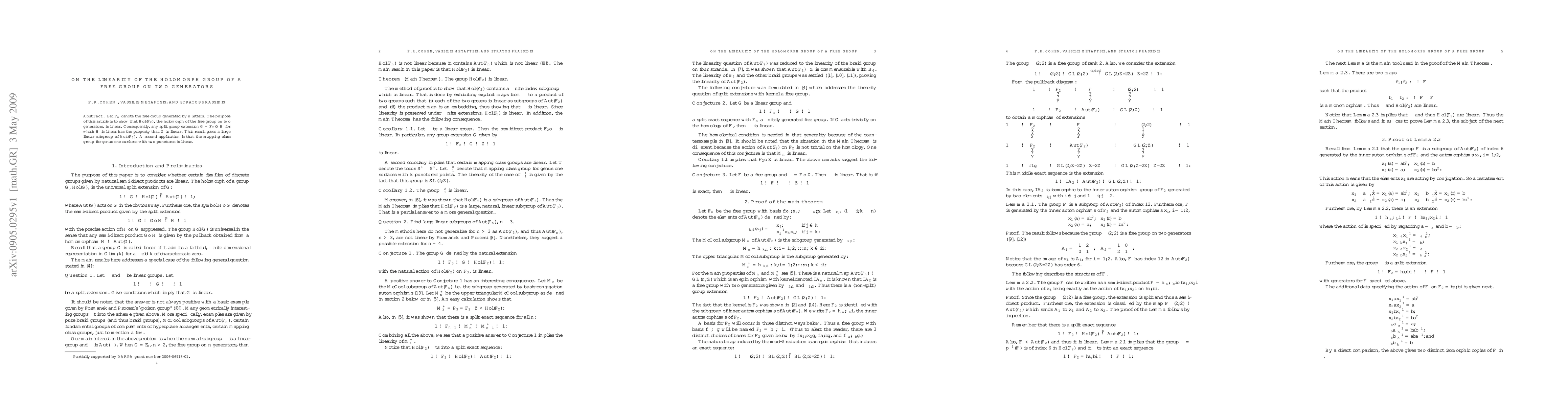 Let F_n denote the free group generated by n letters. The purpose of this article is to show that Hol(F_2), the holomorph of the free group on two generators, is linear. Consequently, any split group extension of F_2 by a linear group H is linear. This result gives a large linear subgroup of Aut(F_3). A second application is that the mapping class group for genus one surfaces with two punctures is linear.