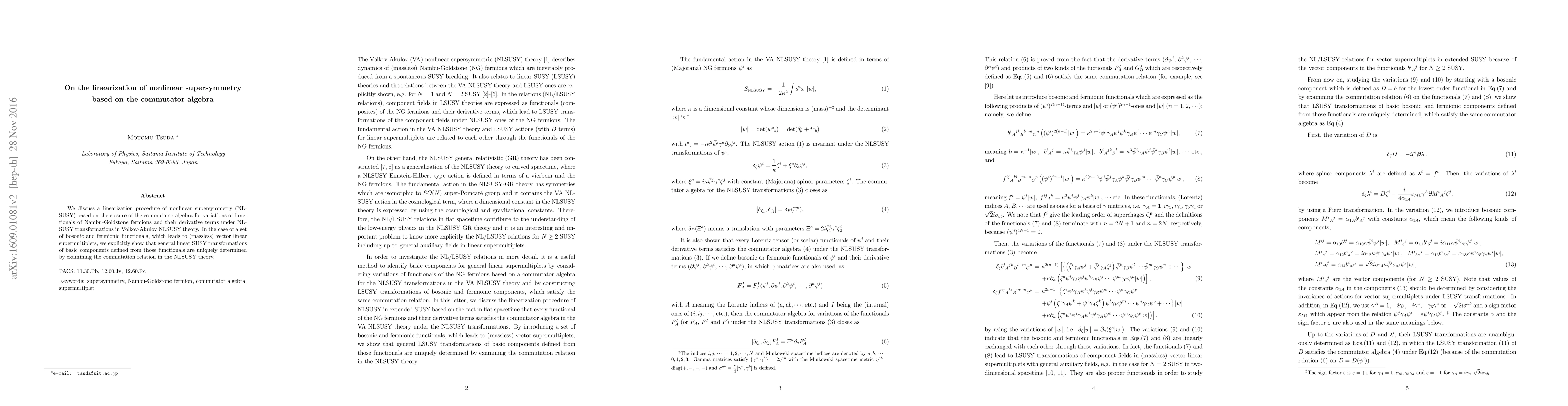 We discuss a linearization procedure of nonlinear supersymmetry (NLSUSY) based on the closure of the commutator algebra for variations of functionals of Nambu-Goldstone fermions and their derivative terms under NLSUSY transformations in Volkov-Akulov NLSUSY theory. In the case of a set of bosonic and fermionic functionals, which leads to (massless) vector linear supermultiplets, we explicitly show that general linear SUSY transformations of basic components defined from those functionals are uniquely determined by examining the commutation relation in the NLSUSY theory.