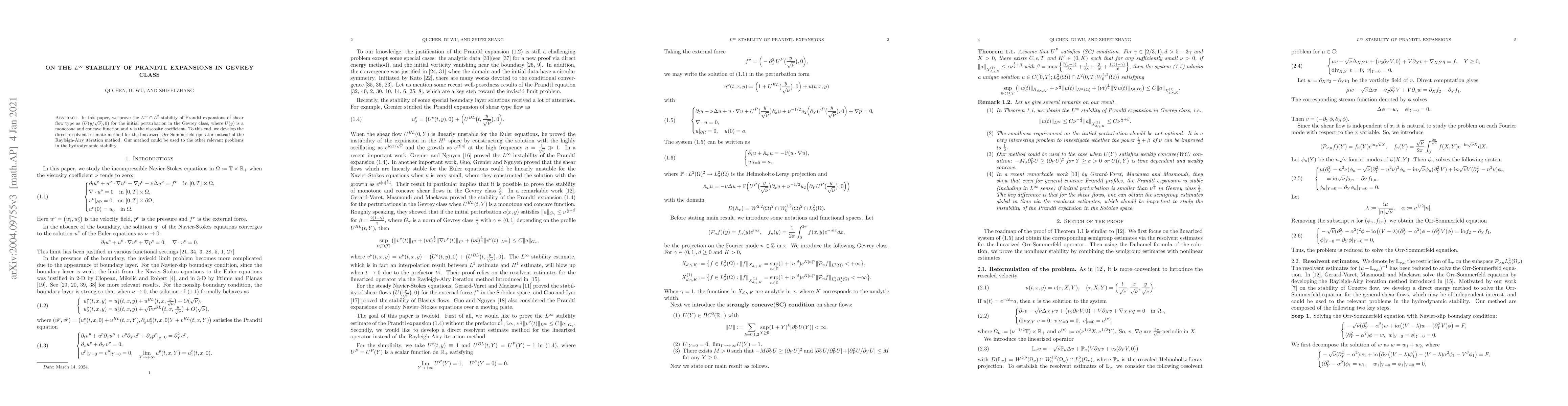 In this paper, we prove the $L^\infty\cap L^2$ stability of Prandtl expansions of shear flow type as $\big(U(y/\sqrt{\nu}),0\big)$ for the initial perturbation in the Gevrey class, where $U(y)$ is a monotone and concave function and $\nu$ is the viscosity coefficient. To this end, we develop the direct resolvent estimate method for the linearized Orr-Sommerfeld operator instead of the Rayleigh-Airy iteration method introduced by Grenier, Guo and Nguyen.