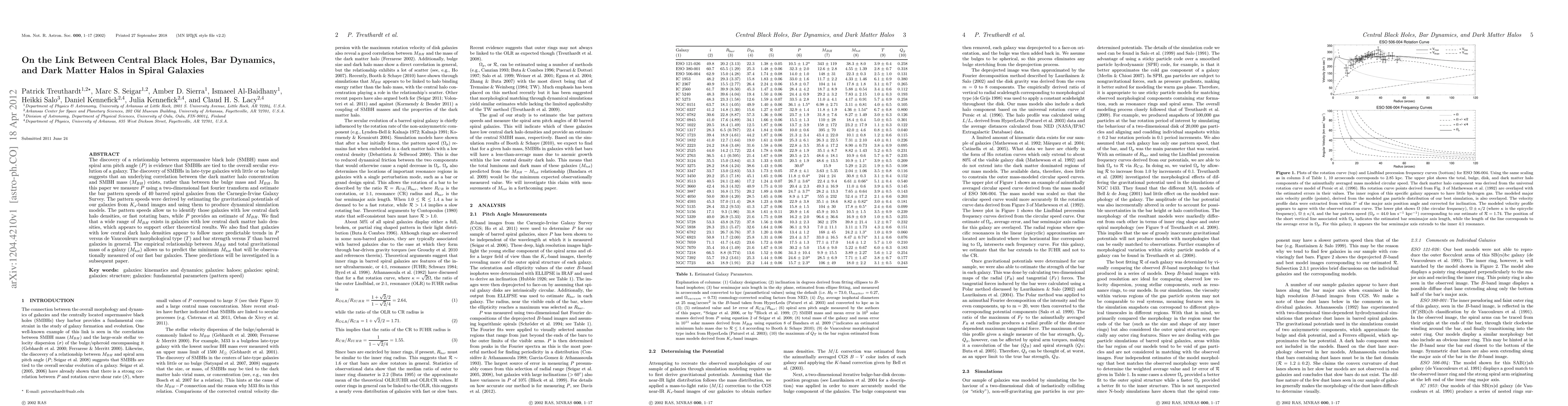 This paper investigates the relationship between supermassive black hole mass (MBH), bar dynamics, and dark matter halos in spiral galaxies. It finds that MBH correlates with dark matter halo concentration rather than bulge mass, and that galaxies with low central dark halo densities exhibit predictable trends in pitch angle and bar strength.