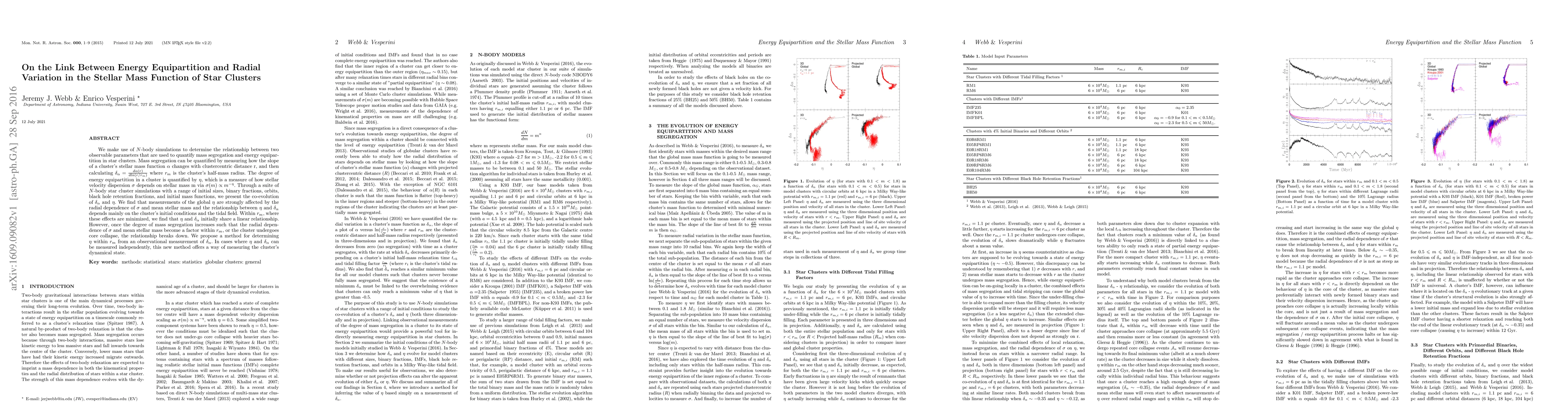 We make use of $N$-body simulations to determine the relationship between two observable parameters that are used to quantify mass segregation and energy equipartition in star clusters. Mass segregation can be quantified by measuring how the slope of a cluster's stellar mass function $\alpha$ changes with clustercentric distance r, and then calculating $\delta_\alpha = \frac{d \alpha(r)}{d ln(r/r_m)}$ where $r_m$ is the cluster's half-mass radius. The degree of energy equipartition in a cluster is quantified by $\eta$, which is a measure of how stellar velocity dispersion $\sigma$ depends on stellar mass m via $\sigma(m) \propto m^{-\eta}$. Through a suite of $N$-body star cluster simulations with a range of initial sizes, binary fractions, orbits, black hole retention fractions, and initial mass functions, we present the co-evolution of $\delta_\alpha$ and $\eta$. We find that measurements of the global $\eta$ are strongly affected by the radial dependence of $\sigma$ and mean stellar mass and the relationship between $\eta$ and $\delta_\alpha$ depends mainly on the cluster's initial conditions and the tidal field. Within $r_m$, where these effects are minimized, we find that $\eta$ and $\delta_\alpha$ initially share a linear relationship. However, once the degree of mass segregation increases such that the radial dependence of $\sigma$ and mean stellar mass become a factor within $r_m$, or the cluster undergoes core collapse, the relationship breaks down. We propose a method for determining $\eta$ within $r_m$ from an observational measurement of $\delta_\alpha$. In cases where $\eta$ and $\delta_\alpha$ can be measured independently, this new method offers a way of measuring the cluster's dynamical state.