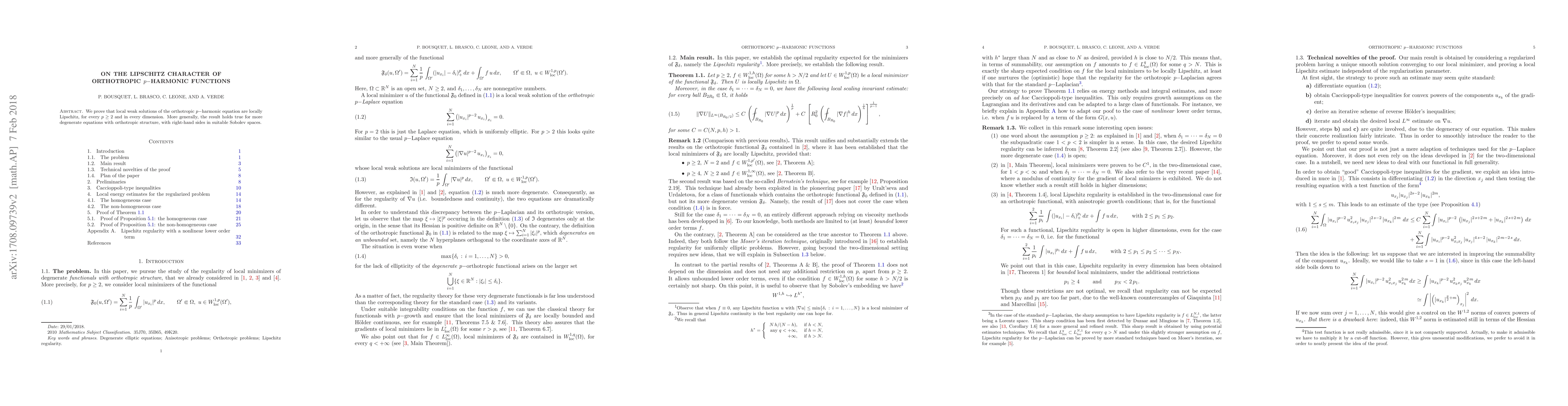 We prove that local weak solutions of the orthotropic $p-$harmonic equation are locally Lipschitz, for every $p\ge 2$ and in every dimension. More generally, the result holds true for more degenerate equations with orthotropic structure, with right-hand sides in suitable Sobolev spaces.