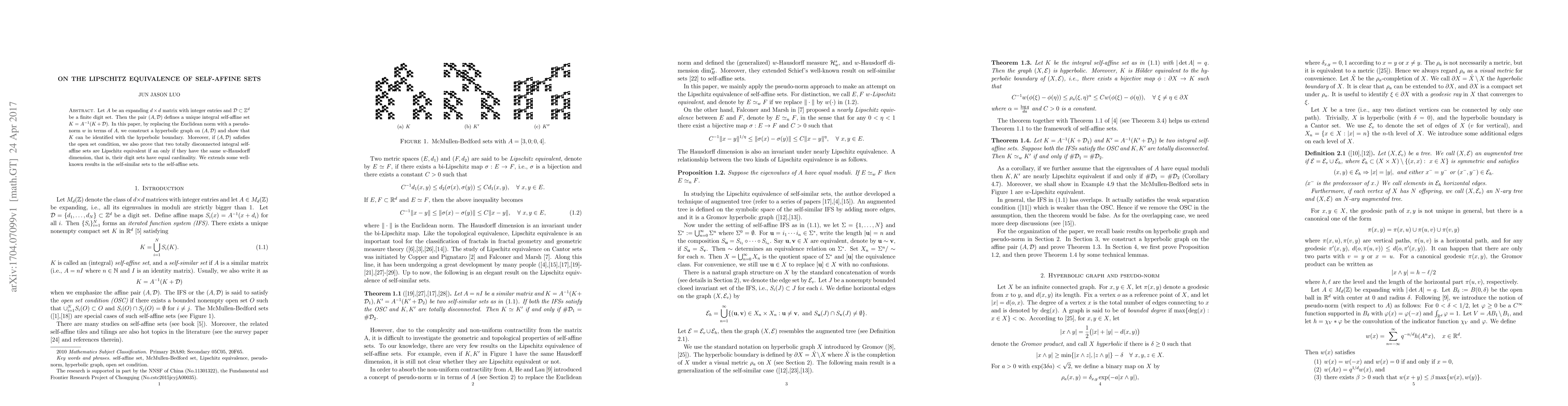 This paper constructs a hyperbolic graph on self-affine sets defined by an expanding matrix $A$ and a digit set ${\mathcal D}$, showing that these sets can be identified with the hyperbolic boundary. It proves that under the open set condition, Lipschitz equivalence of such sets is determined by their $w$-Hausdorff dimension, extending results from self-similar to self-affine sets.