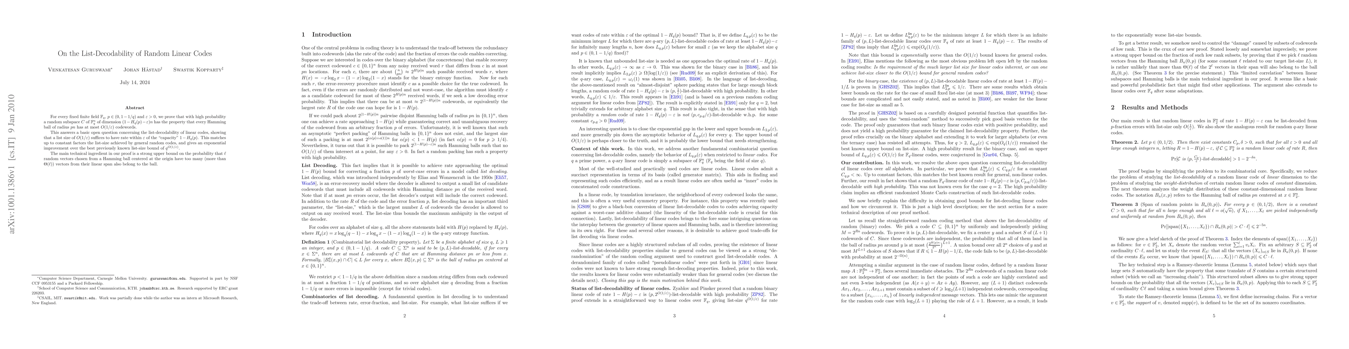 The paper introduces a novel application of Ramsey theory in conjunction with the Sauer-Shelah lemma to bound the list-decodability of random linear codes, significantly improving known bounds.