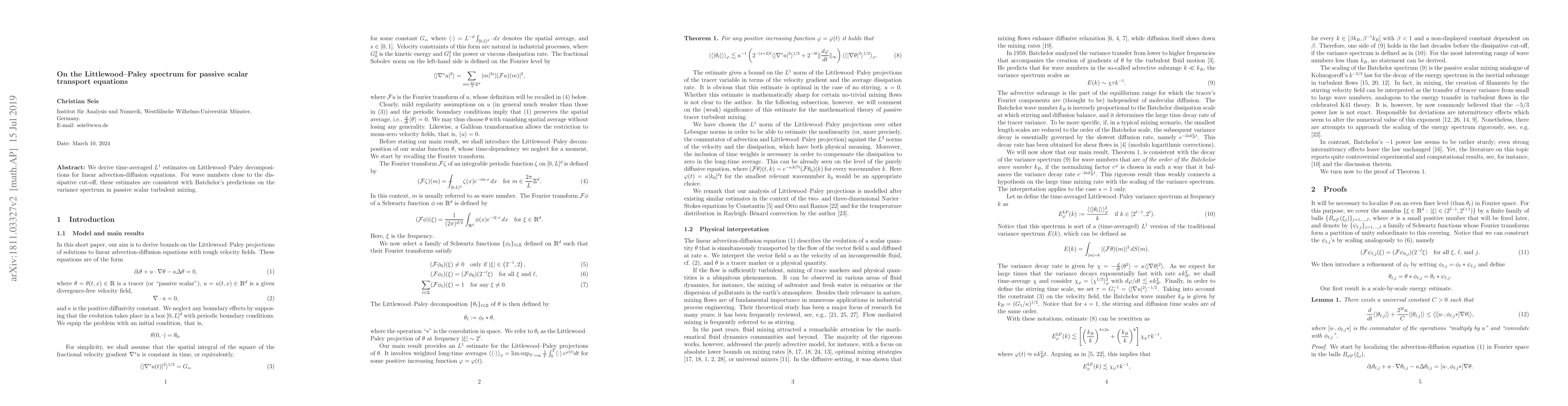 This paper derives time-averaged $L^1$ estimates for the Littlewood-Paley decomposition of linear advection-diffusion equations, showing consistency with Batchelor's predictions for the variance spectrum in passive scalar turbulent mixing near the dissipative cut-off.