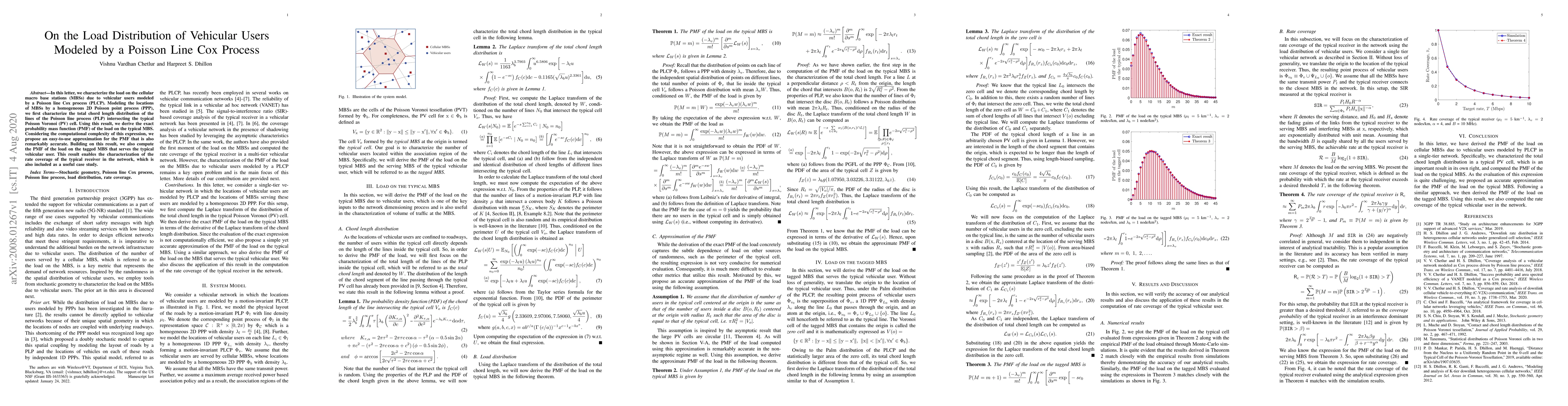 This research paper models load distribution on cellular macro base stations due to vehicular users using a Poisson line Cox process, providing an accurate approximation for the load probability mass function.