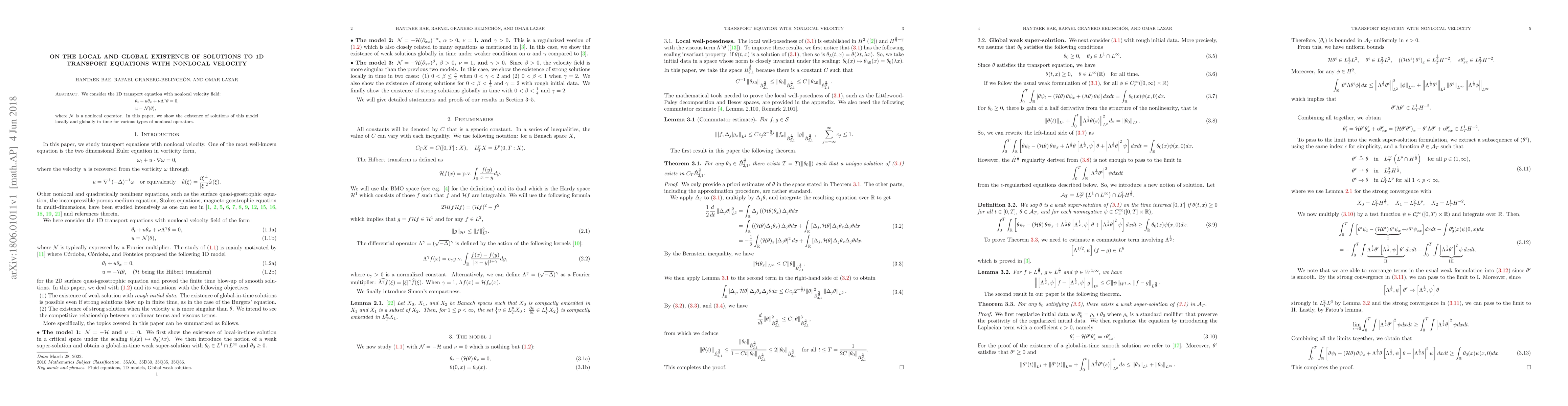 This paper investigates the 1D transport equation with a nonlocal velocity field, proving both local and global existence of solutions for various types of nonlocal operators. The study focuses on the equation \(\theta_t + u\theta_x + \nu \Lambda^{\gamma}\theta = 0\) where \(u = \mathcal{N}(\theta)\) and \(\mathcal{N}\) represents a nonlocal operator.