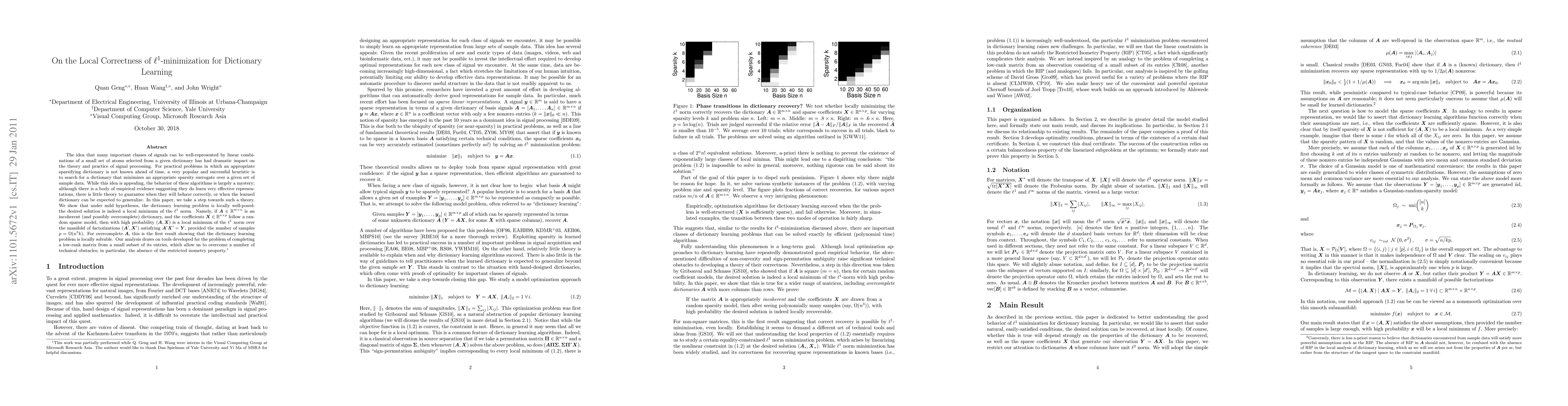 This breakthrough analysis provides a theoretical guarantee for local correctness of L^1 minimization in dictionary learning, addressing long-standing questions about algorithm behavior and generalizability.