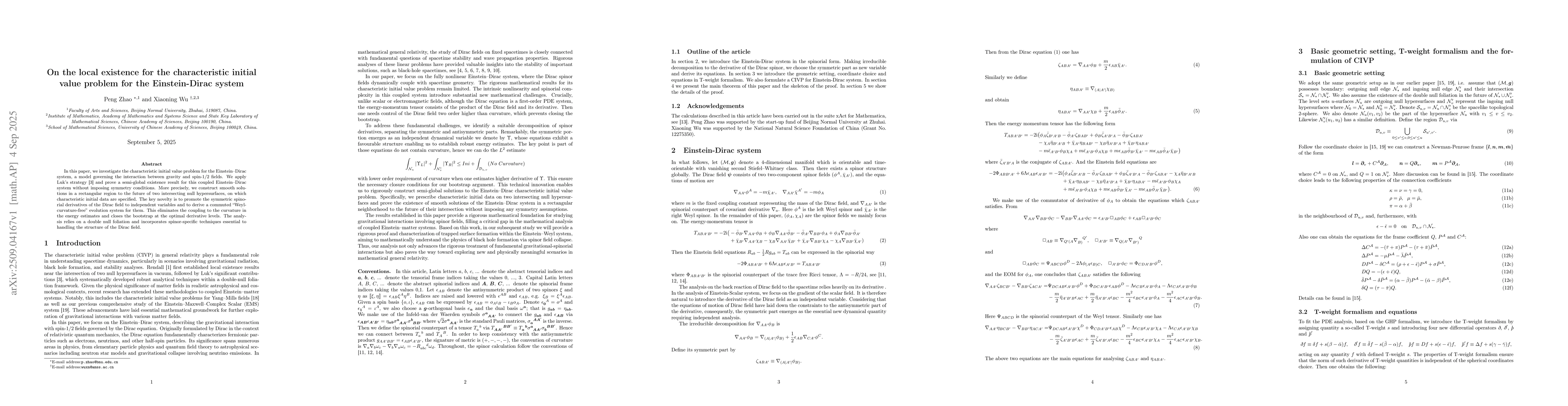 In this paper, we investigate the characteristic initial value problem for the Einstein-Dirac system, a model governing the interaction between gravity and spin-$1/2$ fields. We apply Luk's strategy \cite{Luk12} and prove a semi-global existence result for this coupled Einstein-Dirac system without imposing symmetry conditions. More precisely, we construct smooth solutions in a rectangular region to the future of two intersecting null hypersurfaces, on which characteristic initial data are specified. The key novelty is to promote the symmetric spinorial derivatives of the Dirac field to independent variables and to derive a commuted "Weyl-curvature-free" evolution system for them. This eliminates the coupling to the curvature in the energy estimates and closes the bootstrap at the optimal derivative levels. The analysis relies on a double null foliation and incorporates spinor-specific techniques essential to handling the structure of the Dirac field.